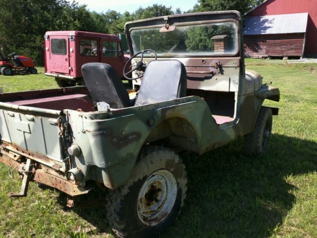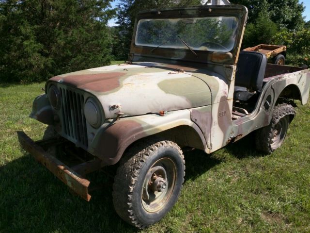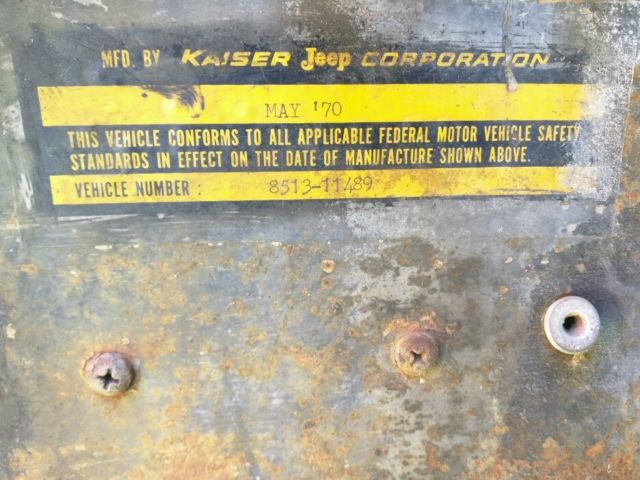 | here is a 2 for 1 deal I have a 1968 jeep Kaiser in camo turns over strong no spark and needs drive shaft and restored this jeep has a clean title then I have a nice 1970 jeep/Kaiser with hard top and sliding doors very solid runs and drives good needs brake work has 6 ft snow plow complete works great this is a good running jeep that has a upgraded buick v6 engine this jeep has no title so 2 jeeps 1 title do want you want with the 2 |