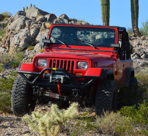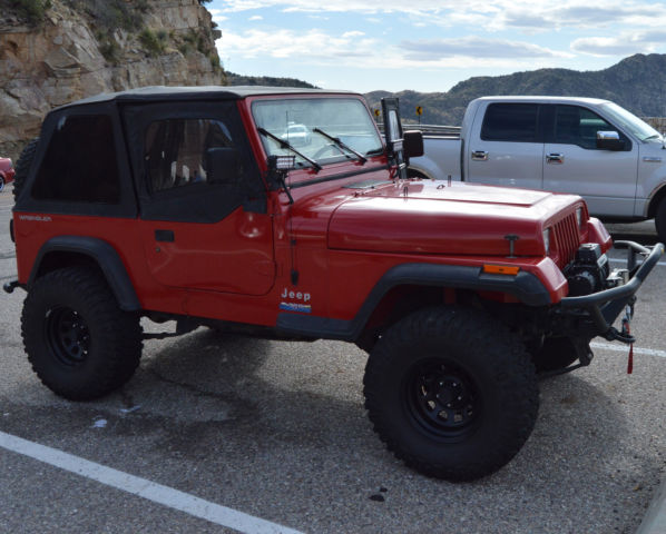 | Great condition 94 jeep wrangler s 2.0 4cyl with airaid throttle spacer and cool air intake on 4inch rancho lift kit 33 mickey thompson tires and wheels, 2 ring and pinion upgrades with G2 differential cover, mittybilt rear and front bumper with 9500 winch brand new interior |