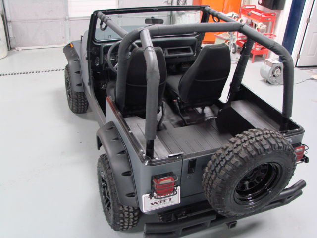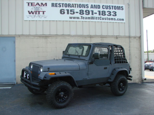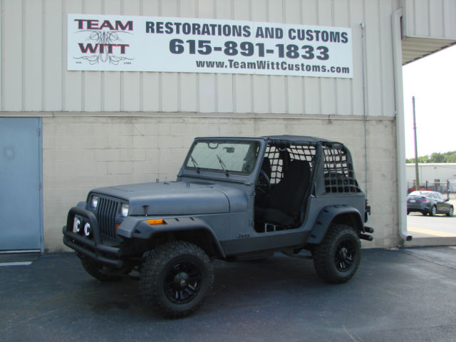 1993 Jeep YJ 4x4 This is an excellent Jeep that is ready for summer fun and can be driven anywhere!!! Fuel injected, cylinder, .0L engine provides plenty of power and is a joy to drive. 5spd manual transmission makes for a nice ride in town, ff road, r on the interstate. Four-Wheel-Drive works as it should. Runs and drives great on NEW, 0x9.5 R15 Federal Couragia M/T LT tires with matching spare. The entire tub and body are bed lined with RAPTOR BEDLINER making it easy to maintain, eep clean and looking great with no worries. Up front are NEW, "KC Hilites mounted on a matte black, ube bumper and matching rear, ube bumper as well. NEW, mitty Bilt fender flares all the way around giving it that preferred, Jeep"look! Rocker panels are protected with NEW, luminum rocker panel guards. The seats are in excellent condition with NEW, eoprene seat covers to protect you from a Hot and Sticky seat. The full roll cage is completely padded with added grab handles. The ENTIRE body is RUST FREE. Frame, s expected, s rock solid with NO RUST! It is hard to find a Jeep in this kind of shape with all the extra's! Also Included: ½ Steel Doors with soft top and glass windows (not plastic windows) Soft Top and Soft Top Frame Smitty Bilt Cargo Net Bikini Top There will be an additional $99.00 assessed to each sales transaction for dealer doc fees.