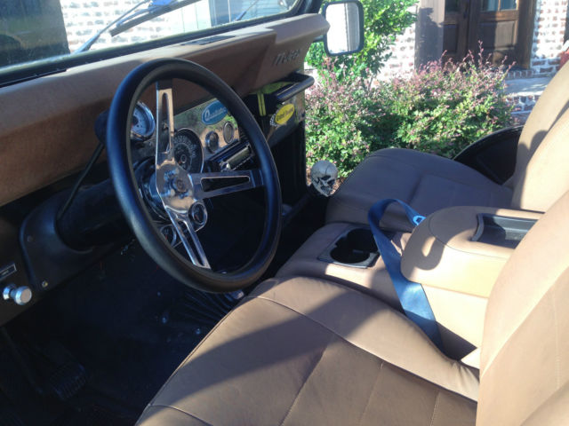 I bought this jeep as a daily driver, nd have wound up replacing nearly everything on it. Here are the basics- AMC V8, anual 4-speed, -inch suspension lift with 35's (less than 1,000 miles), inch, ustom bumpers. First, he condition of the tub is actually quite good for a 77. Some rust around the lower wheel wells, ut other than that it is solid. Inside has been painted- appears to be a thin coat of bedliner. Outside has a few dings, ut is in good shape. It is a fine specimen for the year. New seats, ront and back. New bikini top. Soft top looks to be a few years old and has some wear, ut is solid. ALL MECHANICAL WORK HAS BEEN PROFESSIONALLY DONE. Here is what I have added, ixed, r replaced: Here is what needs to be done next, n order of priority: Also replaced starter, attery, lugs, lug wires. |