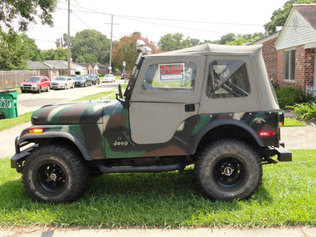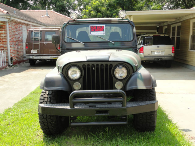 1978 AMC Jeep for sale in very good condition. The 4.2L AMC engine cranks up easy and the Jeep drives great. The transmission and the transfer case have been rebuilt and is working great. It has many new parts including. New seat belts, ew seats, ew steering box and after market heavy duty steering bracket, teering column has been rebuilt, ew radiator and hoses, ew transmission bracket, ew dash and gauges, ew windshield frame and front glass, uel battery box and duel battery switch, st1>CRT performance HEI Distributor, arburetor has been rebuilt. The starter, olenoid and the alternator have also been replaced. All break lines, alibers, hoes have been replaced. Also power brake system has been installed. Fuel gage and sensor have been replaced. No rust on the vehicle. Vehicle was stripped to bare metal and repaired and painted. The rear tailgate was removed and replaced. Aluminum diamond was used inside and out on the tailgate. All lights and covers have been replaced with new one; no used parts have been used. All of the electrical system has been replaced with new wiring and new fuse block. It has 33 inch tires that are new as with the rims. The top is in great shape, o rips at all. It has an overhead consol with 3 switches. Halogen overhead lights along with reverse lights that are on switches. New clutch and throwing bearing have been installed. New pilot bearing also installed.