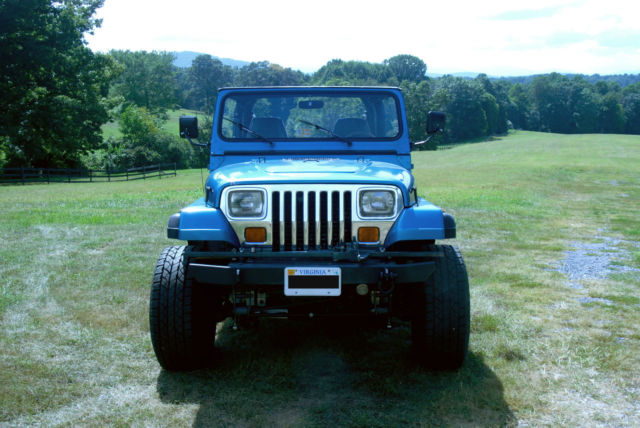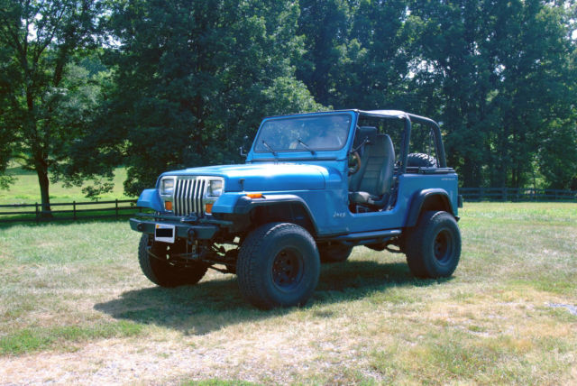 1993 Wrangler YJ. New Golen long stroke engine with only 8,717 miles. Manuel transmission. Used as off road mountain Jeep - completely street legal. All modifications completed on or after new engine installed (suspension slightly before). I've only put 8,717 miles on the Jeep since the new engine install (engine installed at 158888 miles, /15/12) Golen 4.6 long stroke engine (engine alone worth $3599) 24lb injectors JBA stainless header Performance distributors firepower ignition kit Rugged Ridge cold air intake(have original air intake too) With all above engine mod's the Jeep should be slightly over 300HP Black Diamond 3 1/2" lift kit Boomerang shackles 1/2" lift AGR racing steering box Teraflex rear disk brake kit Remanufactured AX15 transmission (18/12/12/ Man-Trans) New Alternator/Battery/Clutch Set (03/08/13) Grant Classic Steering Wheel in Walnut Grip with Chrome Spokes Husky contour floor liners CIPA Mirrors - mirror relocation to run legally without doors (doors are included!) Quadratop Bimini Top (I have the original Winter soft top - not in mint condition and probably needs some weather shield spray. Also: 32 x 11.5 Yocohama tires (plenty of wear left on tiers) + bucket rims Flowmaster exhaust Dirtworx fabrication front bumper (with hi-jack installed) Rock crawler rear bumper Side amour bars Has AC installed Oil just changed - Joe Gibbs HR-2 as standard for Golen engine (Wix filter). All fluid levels topped up and full tank of gas (premium).