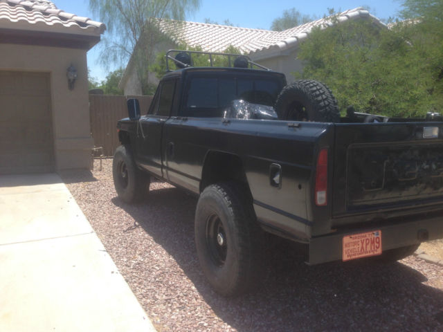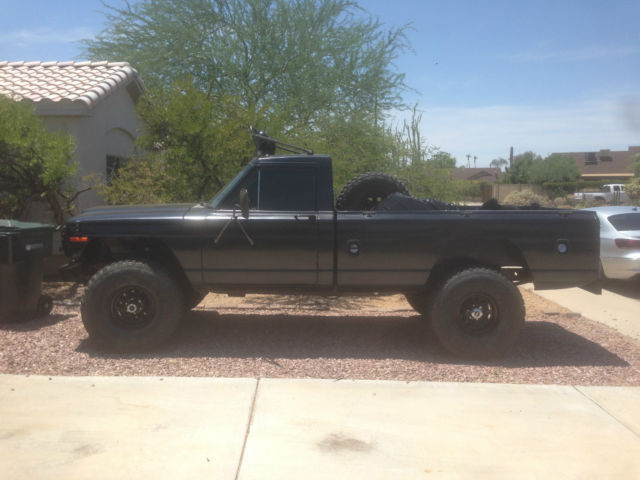 1964 Jeep J10 Pick Up- Call of Duty/ Black opps/ Bug out Fuel injected 5.9 (360) engine from a 1995 Dodge Pickup Four Speed automatic overdrive trans NP231 transfer case Headers, ustom exhaust Magnaflow muffler etc. New 6" lift springs in the front, ift blocks in the rear New 37x12.5x16.5 Goodyear Wrangler military on new black powercoat steel crawler wheels, ew lugs, heel locks and valve stems. Power breaks, ront disc brakes, ock out hubs, ana 44 front axle, MC rear axle power steering. New seat, nterior is black, xt is black Fuel cell and new 37" spare tire mounted in the bed of the truck Metal fab light rack with four new KC 8" offered lights- not wired in This is a bad to the bone pick up- very tough looking- has a Call of Duty/Black opps/ Zombie killer bug out look. Runs excellent. |