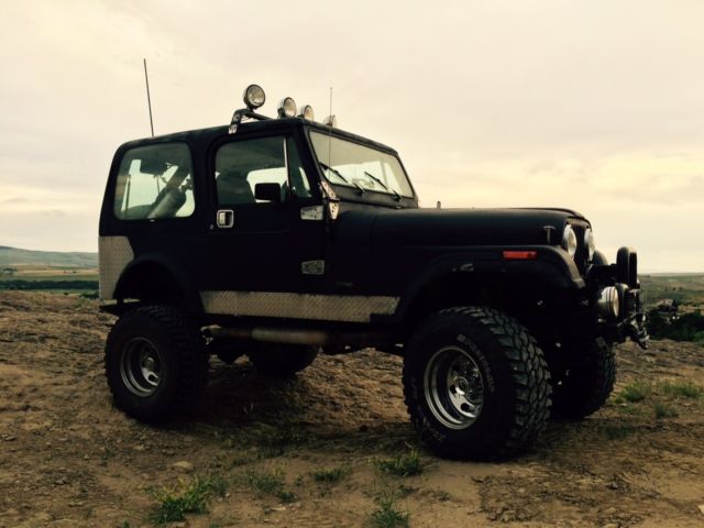 | 1983 Jeep cj7 8000k winch rebuilt about 1000 miles ago401 with amx 291c heads .060 over balanced lunati voodoo cam. Just rebuilt 5speed trans. Lockright lockers front and rear. minor rust around rear wheelwells. previous owner rattle canned over original red paint. Runs strong great trail or mud rig. |