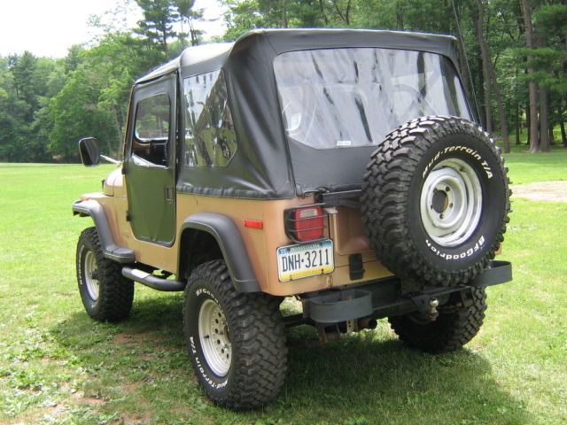 1977 JEEP CJ-7 - Runs Strong - Does not burn or leak oil Purchased privately in 1996. Title is clear. Needs body work. Old body work popping through. About 1 quart of original paint is included for making body repairs. Rotted out driver side floor was just replaced this spring. Good Pennsylvania inspection until August 2016 6 Cylinder - 258 CID (4.2L) engine - Carburetor...not fuel injected T176 - 4 Speed Transmission Dana 300 Transfer case Centerforce clutch 1" Transmission drop kit Dana 30 widetrack front end 3:73 gears with Richmond Lockright locker & disc brakes. Factory hubs AMC 20 widetrack rear end 3:73 gears with fulltime Powertrax locker & 1 piece axle shafts & 6 degree leaf spring shims 3" total lift...2" Superlift springs & 1" shackle lift Rancho shocks Power steering Rancho steering stabilizer Braided stainless steel brake lines front & back Drop pitman arm Energy Suspension motor mounts & transmission mounts Daystar polyurethane body, way bar, amp; tie rod bushings Rock Equipment tie rod flip kit Quick disconnect sway bar links 127,000 miles (not original miles) Runs strong ...Better for off-road more than an everyday driver. Does not burn or leak oil. Body...old body work showing through but still passes inspection...driver side floor rusted out and fixed with replacement floor panel. Under side of body patched 10 years ago. Frame and mounts are good condition B.F. Goodrich Mud-Terrain 32 x 11.5 R15L tires on Outlaw wheels Good Bestop soft top New master cylinder New fuel sending unit although fuel gauge still does not work. Buyer is responsible to pick up vehicle in Boyertown, A. Vehicle is being sold AS-IS. There are no warranties. A $500 non-refundable deposit is due within 24 hours of the conclusion of the auction via PayPal. All sales are final. The final payment must be received at pick up within 7 business days of auction end time. Additional pictures can be available...contact seller. If there are any questions, LEASE CONTACT SELLER PRIOR TO BIDDING. |