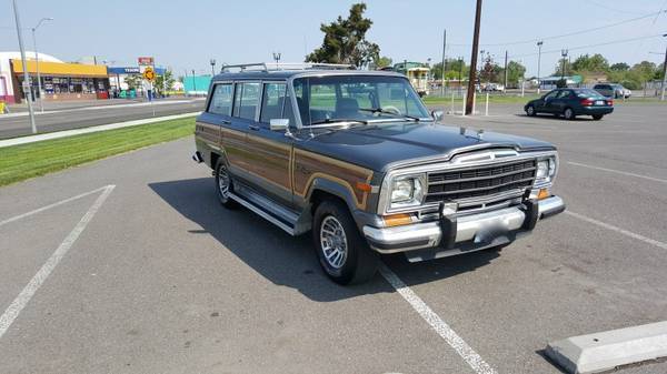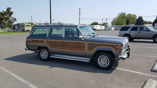 Make an offer!Up for sale is a 1989 Dover Grey Jeep Grand Wagoneer. Cordovan interior. This is a classic car that I love, just don't have room for it anymore. Hate to part with it. The car drives and handles better than my daily driver.Has 200k miles (Engine and transmission were rebuilt 30k ago)Pros:Runs perfectlyShifts perfectlyHandles extremely well, ts a dream to driveAll leather door liners look like newSeats have no tearing just normal leather creasesNew professionally sewn steering wheel leather wrap in factory color (not pictured)Includes center console cupholder with compartment (not pictured)Brakes are great4WD works as it shouldGood life in tiresEngine and transmission were rebuilt 30k agoHas all badges, mblems, rim and hood ornamentAll windows work except tailgateAC blows coldHeat blows hotGauges are all accurateAll doors have handles and arm restsComes with assorted interior parts, rim, eather stripping, ights, eat belts and other odds and ends.Carpet is all plush and cleanNever had a smoker in the carAll center caps are presentAll badges are present.Cons:One small bubbling spot on tailgate but still under the paint. (pictured)Tailgate window does not go down. The motor is fine and switches and key work, ust needs a new trackDriver door automatic lock is finickyRear wiper was missing but I have brand new replacement just need to install.Trunk needs new carpet but I have an OEM custom cut carpet replacement just have not installed it yet (comes with the car)Crack in plastic on engine temp gauge cover. Cheap fixIncludes 4 sets of keys and clean titleLet me know if you have any questions or want to come take a look. If you have any questions let me know.