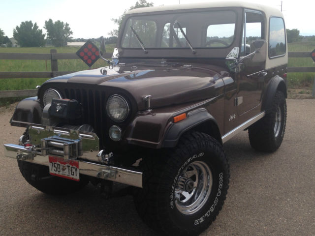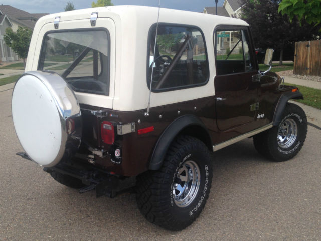 | 1978 CJ7 Jeep with 46,000 Miles Orig NO RUST! Garage Kept 258 Straight 6 4 speed trans. Passes emissions every year in Colorado Hard top with full doors Front warn hub lockers Warn winch New 33' Goodyear Dura trac tires Tow Bar ALL gauges and knobs work! Jerry gas can carrier Most dependable vehicle I've ever owned. Can be used as an everyday driver. Have all the orig paperwork from 1977(window sticker,bill of sale,pamphlet, ervice manuel and owners manual). |