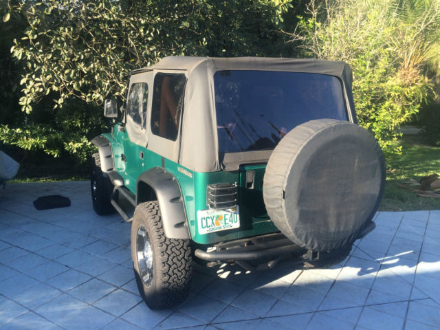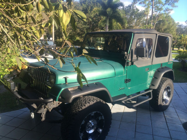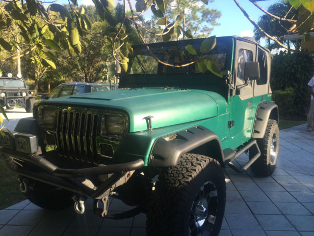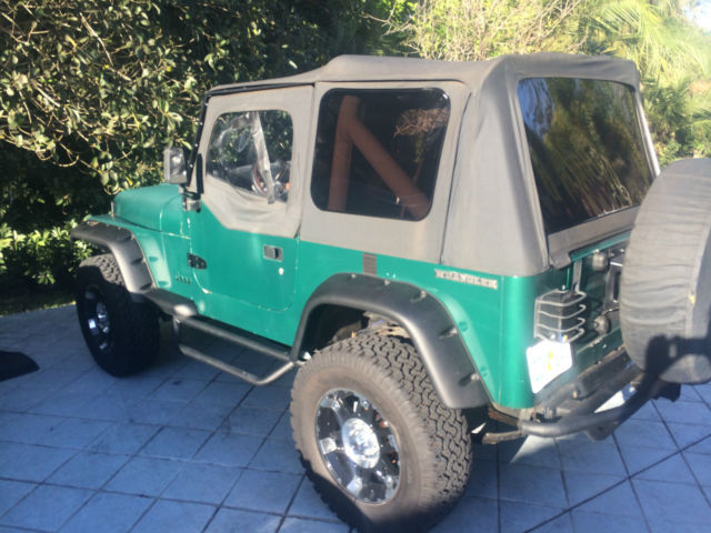 1989 Jeep Wrangler YJ 4x4 - looks, rives, nd feels like the beach! Automatic transmission - title in hand & clean Carfax Report- Soft Top included, ut settings for a Hard Top are still installed, lean interior with accents. More details about my awesome Jeep: New Six cylinder engine installed less than 500 miles ago, ith 3 year warranty! New starter and HUB assembly just installed Complete audio system with amplifier New 35 inch super swamper tires New rims Fender mod: off road and coated Extra oversized tire mount Rock sliders on side below doors CD player New highbeam light set up