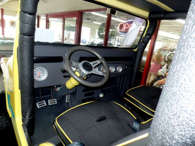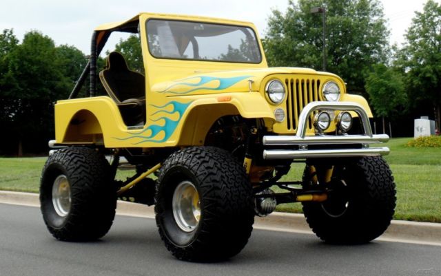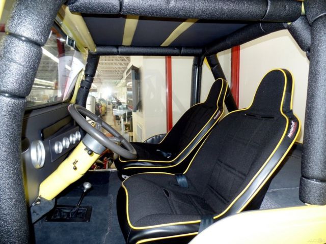 '66 WILLYS JEEP 4X4, o expense spared Professional nut & bolt restoration almost $60K spent! (look underneath!) Freshly built Chevrolet 383cid stroker V-8 with aluminum heads and the best parts @450hp, reshly built Turbo 400 automatic transmission with Billet Lokar shifter, reshly rebuilt and painted HD transfer case, D front DANA & HD Ford 9 posi differentials, 000 man hours for the Jeep body-custom firewall-taillights-wheel openings-bottom of tub, irror finish Sunfire yellow paint, ustom frame with no exposed holes-extra bracing-no rivets-powered coated and detailed, ull custom black bucket seat interior, ustom 6 point padded roll cage, atching bikini top and Fold down windshield, ull custom made dash w/Autometer gauges-10K rpm tach+200 mph speedo, reat sounding ceramic headers & dual exhaust, erious Forged alloys with Mickey Thompson 39" all terrain M+S radials, ower disc brakes and Power steering, eavy duty susepnsion with Quad link 4 shocks per axle-tied to the frame and reinforced for the power, idden sound system with dual custom amps-hi-fi speakers and digital head unit, ellow top Optima battery, mitty built custom tubular chrome bumpers, tainless hand built gas tank, n road or off road, n any weather, ts just cool! Showing only 252 miles since the build. Financing available on this SHOW Jeep.*All wholesale priced vehicles, ike this one, o not quilaify for our free enclolsed shipping and extended warranty but can still be purchased at our wholesale cost.
