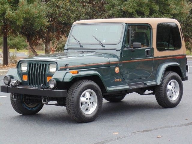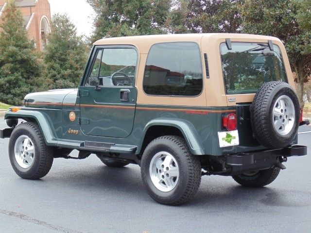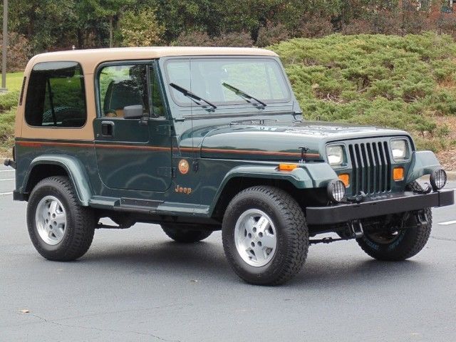 1993 Jeep Wrangler Sahara Welcome to AdventureMotorCar's online listing. You are looking at a 1993 Jeep Wrangler Sahara edition. This Jeep has the Sahara package which carried a hefty price tag. This Jeep Wrangler Sahara is finished in Hunter Green Metallic. This is a nice. well-optioned Jeep that runs and drives as good as it looks. You will notice that this vehicle has been well cared for over the past twenty one years. This ONE OWNER vehicle has a clean CARFAX history. Options Include: 4. 0 Liter (242 CID) I-6 Engine. 5 speed manual transmission. NEW 235/70/R15 Goodyear Radial Wrangler Tires. 15" Alloy wheels. Full size spare tire. Trail-cloth Highback seats with storage pockets. Interior door panels with storage pockets. Power steering. Front bumper mounted fog lights with plastic end caps. Floor carpeting (full width. and on insides of body tub). leather wrapped steering wheel. body colored fender flares with integrated bodyside steps. Center console with cup holders. Courtesy and engine compartment lights. Interval wipers. tilt steering. and Glove box lock. The exterior is in good condition. The wheels look good for their age (see pics) and the tires are new. The only exterior apologies are a few minor imperfections typical of a twenty one year old vehicle (see pics). The interior is in good condition. All seats and carpeting look great. The only interior apologies include a few minor imperfections that you would expect from a vehicle of this age. This Jeep drives very well. The manual transmission shifts through all five speeds. Please call us should you have any questions at 205-821-2497.