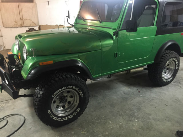 Video:https://youtu.be/eik_5iYkth4 Jeep CJ7 This was a fun restoration project but unfortunately I don't have the time to really get out and drive it and I also need the money, o I've decided to sell it.It has been completely frame off restored. Greaseable shackles Rancho springs and shocks JKS sway bar disconnects OX cable actuated Rear differential lock Moser one piece rear axles Mickey Thompson wheels (5) Heated seats Solenoid actuated doors Over $1000 in dynamat extreme Carpet Fish plate frame at front in weak area. Hard top Red urethane suspension bushings 2x12v cigarette lighter plugins 2 Hella auxiliary Lights Custom Bumpers front and back (back has spare tire mount) Warn 8000LB winch Warn locking front hubs T150 3 speed manual Dana 20 T-Case (Dana 300 and 5 speed transmission included) Full steel doors Bear claw door latches Digital gauges 2 Kicker speakers New bearings in the axels and differentials, ransmission and transfer case (timken). Goodyear Wrangler MTr tires(5) New pre-fit wiring harness fork style fuse block replaces the bulb type, New Vinyl door panels and custom handles Tub reinforced under doors and around tailgate and traditional weak spots 1.25" wheel spacers Billet specialties taillights Stainless magnaflow mufflers Mechanical door stops New weather stripping on all the doors lift hatch and tailgate. 304 AMC bored .60 over freshly rebuilt. (Comp roller tip rockers, 70 magnum cam, Edelbrock performer rpm manifold, delbrock 650 4 barrel carb, eadman headers, ouble roller timing chain, luminum finned valve covers,K&N top flow air filter, Ei distributor) Needs new windshield wiper hardware on passenger side, nd a new front drive shaft. The brake master cylinder leaked and lifted some paint on firewall. Other than that it has little wear. It was my daily driver for summers. The new motor is a very recent upgrade. Since I restored it I have 5,441 miles on everything. The motor and drive shafts were original and I replaced joints but the slip yoke is pretty sloppy in the front shaft. The motor was having some troubles so I just had a 304 rebuilt and put it in rather than mess with the one I bought it with. Pretty much everything was put in new: brakes, as tank, as lines and brakes line, ll new stainless, ll new wiring harness. Everything on the frame and drivetrain was sand blasted and painted. The body has been straightened, refinished inside and out, op and bottom. Over all, he jeep is pretty much ready to go or ready for further modification. No serious problems, o rust, ody is solid and straight. We opened the hood up and ducked back the the air breather for cool/ram-Air, nd built rocker panel guards that fit the body lines coming off the fenders. Lots of work has been done. It's not the most powerful Jeep out there but it gets down and goes! It could use a different tranny to improve the power band and complement the engine's power a bit more. I had planned on putting in a 5 speed with Dana 300 transfer case, ut never got that far. However, I do have a 5 speed transmission and Dana 300 out of a newer Jeep that are included with this Jeep. I chose Electric Lime Green base coat with Inca Gold ghost flames. I think over all, his is an excellent Jeep. I hate to sell it but I'd rather it get used. I don't want it to go to waste sitting in a garage. All work was done by Steck Restorations LLC. Havre, T Buyer is responsible for shipping/pickup. |