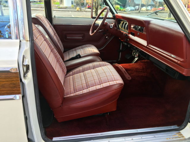 1977 JEEP WAGONEER QUADRA-TRAC 4WD 401 V8 61K ORIGINAL MILES I can send you more pictures for more details on your request. Hello Ebayer's, p for auction is this amazing 1977 Jeep Wagoneer Quadra-Trac 4WD, t has a very powerful 401 CID V8 engine with 61K ORIGINAL MILES! This vehicle is absolutely beautiful, ne owner, nmodified, arage kept, eticulously maintained and well documented. This classic sports a beautiful Alpine White exterior paired with a absolutely gorgeous all original Berry Plaid interior. Other options include.... Automatic transmission Alpine white Berry bucket seats with center arm rest Axle ratio 3.54/1 401 CID V-8 engine 4 barrel Convenience group Hydra-Matic w/Quadra Tra, ow RNG Air-conditioning Power window tailgate Tinted glass Fuel tank skid plate Roof rack Aluminum style wheels Tilt steering wheel Cruise control A.m./FM stereo radio Rear window defogger The luxe cargo area trim Trailer towing package Bumper guards and Nerfing stripes Stabilizer bar, ront Sound level certification package Woodgrain exterior trim This great Jeep is truly amazing and a super rare find with such low original miles, t even has the original spare tire. Believe me when I tell you you will not find one nicer, erfect for anyone's collection or if you're tired of the SUVs of today and want to go old-school this timeless classic will not disappoint. But don't hesitate for a vehicle like this seldom come up at auction, eing offered for 7 days only and with the fair priced reserve this baby won't last. if you have any questions, oncerns or would like to make a buy it now offer please call 818-292 2556 thank you and GOOD LUCK!!! On Dec-15-15 at 23:46:11 PST, eller added the following information: 1977 JEEP WAGONEER QUADRA-TRAC 4WD 401 V8 61K ORIGINAL MILES |