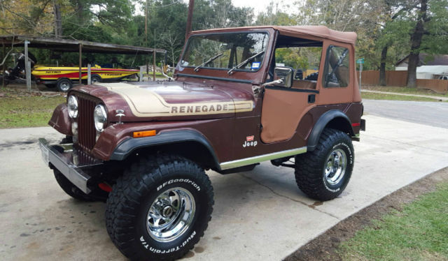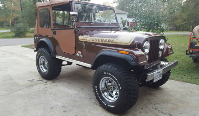 RareCollectors Special1976 Jeep 4x4 Cj5 Renegade Levi Edition. Rust Free. Dark Cocoa original paint and decals in great condition, an Levi original interior all there and in great shape! Factory 304 V8 with 51k original miles and original 3 speed transmission. 3 inch lift, 3x12.50 BFGs, ew shocks. Factory Jeep Warn 8,0000lb upright winchshown in featured image removed to cleanand reinstalled(Rare). Everything works as it should interior, xterior lights, auges, x4 ect.. excluding the clock and fuel gauge on dash, lso has factory tachometer! Drives better than any Jeep I have owned, o rattles or problems you can drive it anywhere. Nothing to hide here this amazing Jeep speaks for itself. New fuel tank, est top, attery, hrome valve covers, ir cleaner, ong tube headers and exhaust, ain cover, nd bikini top. This is a super rare Collector piecethat has been garaged kept and stays up to date on maintenance. Don'twaste your money on somebody's rebuilt junk!Buyer is responsible for shipping. The Jeep is listed locally so I reserve the right to end the auction early.Happy Bidding!