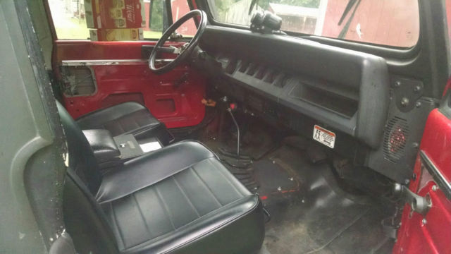 Great Jeep in good condition. The transmission is rebuilt. All of the following are new on the Jeep in the past 18 months: clutch, ater pump, atalytic converter, hocks, indshield, ront seats, eat belts, adio, tep bars. Originally red. Spay painted matte black. Must come get it - cash only.On Aug-05-15 at 05:02:59 PDT, eller added the following information: The listing states a 2.5 liter engine. It is a 4.0 liter - 6 cylinder. |