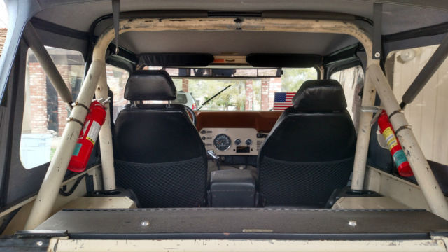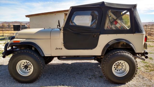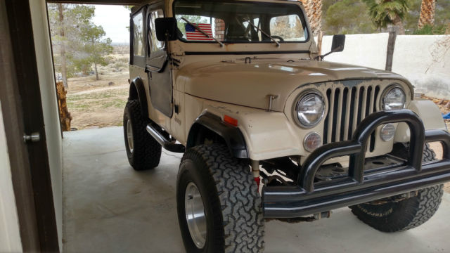 1984 CJ7 JEEP: V6 258 4.2L Engine rebuilt appx 13000 mi ago (paperwork available)/ 5 speed manual/ 4" Superlift/ Rancho 4000 shocks (air on the fly)/ Flowmaster exhaust/ American Eagle alloy rims/NEW BF Goodrich A/T Tires (35 12.5 15)/ NEW Best Top Seats/ WetOkole Seat covers/ NEW Best top Soft Top/ Tilt Steering Wheel/ 3" tube bumpers (front and rear)/ 3" Tube side steps/ Kenwood KRC-609 Stereo/ 500W Prestige AMP/ Tuffy lock boxes @ center console and rear/ NEW windshield frame (in box)/ NEW Battery/ NEW Fuel pump/ XTRA Set 1/2 Doors/ CLEAR TITLE Buyer responsible for shipping costs