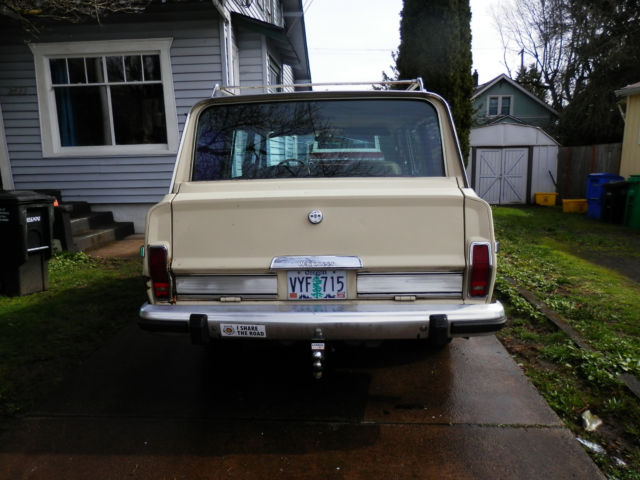 1984 Grand Wagoneer I have converted it to a T-18 trans with the Dana 20 transfer case with twin sticks, removed the front drive shaft to save some gas when it was $4.00 a gallon, nd just havent re installed it. It has Widetrack axles with 3:54 gears. I put the razor grill and facia on along with the hood bar, I have the pig nose and all of the parts to switch it back to original.( included in sale) Original 84' aluminum style wheels (included in sale) It has a 360 engine that has passed DEQ in portland in the past, owever I didn't make it through before the tags expired this year. It runs and drives good, like the 4spd but it is not good for crusing on the freeways. I used it to haul the kids here and there. It is fun to drive and very reliable. The front power windows work however the rear door windows not so much, The tail gate window works from both the dash and with the key. It has an am/fm radio and c/d player for your listening pleasure. All gauges work except gas and odometer. it shows a low low 56K. It worked when I bought it, o some time during my ownership It quit clicking over, estimate that I have only put 10,000 on it maybe. However it looks like it has way more. I have owned it for around 6 years I think. I have swapped the entire drive train anyway so the miles might be accurate for the original rear axle I have in the garage. This jeep is 32 years old and still has plenty of years left in it. I just ripped out the wet carpet last week after discovering the surface rust developing in the passenger floor board and the floor board behind the front passenger seat. Water is coming through the vent in the kick panel area. The dome lights don't work but it is the wiring heading back I may have it fixed before it sells. Headliner is warped because it rains so so much in portland. The windshield is cracked, here is a dent on the door, ent in the rear under the tail light, ent on the front fender. |