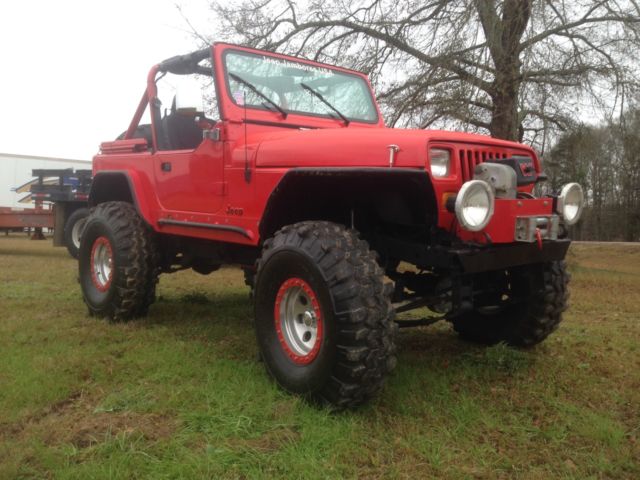 1989 Jeep with Iroc 305 tune port fuel injectionMotor. Custom Jeep!I just updated and following with new parts: New front and rear end with new Dana 44 4:10 gears. New rings, pinions, bearings, brakes. Front drive line. Fuel pump, water pump, fan clutch, thermostat,throttle sensor,u-joints,seats,starter soleinoid, exhaust,headers, wiring, and stereo. Spray liner inside and all underneath. Custom fenders hold up to 300lbseach. Air compressor under hood. Motor completely gone thru andsuper strong. Tires less than 2000 miles.Also has custom lights and warn winch. Tires38". Also soft top with hard doors