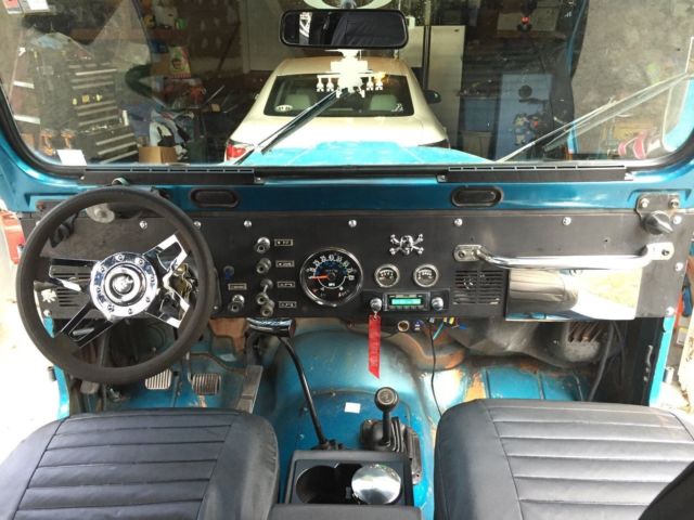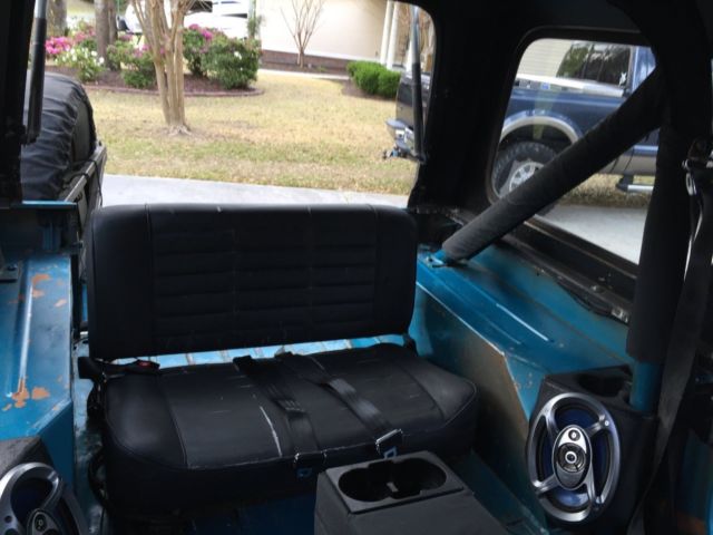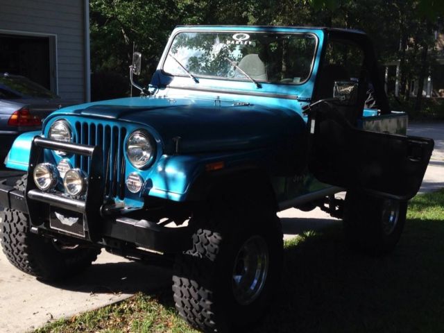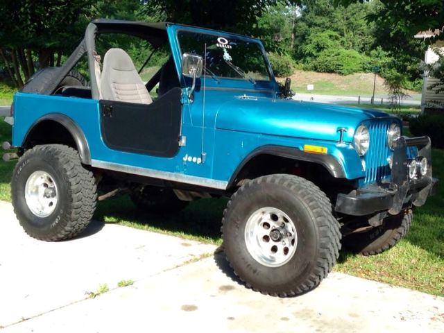 1984 CJ-7 5-Speed Transmission, Inline-6 Cyl. Jeep comes w/ Hard top and Hard doors. Bikini Top and Half Doors. Mickey Thompson Classics, 33' Tires with a 4" lift. Trany has about 5,000 miles. Here is a list of parts either replaced or fixed since 2012: Sep12- new Thermostat and water pump, new belts, new knobs Sep12- new Carb and key fixed Oct 12- new windshield wipers installed. Nov 12- new hard top and doors Nov 12- new seat belts for rear seat Dec 12- new motor mount installed Jan 13- new heater core Feb 13- new radio/amp Speakers in front and rear Mar13- new value cvr gasket installed and painted cvr blue. Apr 13- changed Xmsn fluid, but not filter (no filter in Man trans) New glove box cover and handle. May 13- installed complete new exhaust system. Catalytic converter reinstalled (Not really!) 26Sep13-Compression check on all Cylinders 131-136,New Coil (Square box on drvr side), Oct 10,13- fixed horn, Mickey Thompson rims, new fuel filter and Fuel pump Oct 13- Sky Jacker shocks installed. New Radio installed. Nov 2013- new speedometer cluster, new center console, new LED interior lights Dec 13- new starter module, new 8mm spark plug cables, Distro cap and button, tested coil. And new gas line. Jan-14 Center Console and speedometer cable. Mar 14-Rear bumper added Apr 14-Value seals replaced, Cupper plugs, wheel bearing replaced (need to replace sway bar), New front disc and pads, PVC value system repaired. June 14- rear driv side Leaf spring replaced and Master Cylinder (Pwr Brakes) replaced rear drum and shoes checked. Extended sway bar links added for lift Sept 14 New brake lines installed Sept 14 Extended braided brake lines installed Sept 14 New front seat covers installed Oct 14 Rebuilt Transmission and New Clutch Installed Jan 15 *Oil Changed and Fresh NC Inspection just completed. The only thing this Jeep is missing is a good paint Job! Mechanically the Jeep is Great! It has been a project of mine for the last several years... this is my 2nd jeep. I wanted to get it mechanically sound before I put a paint job on it, but I've ran out of time. I guess I could put a Maccco Special on it, but I have too much respect for the Jeep! I'd rather someone else pick up where I left off and do it right in the color of their choice! . FYI: It has rust in the Passenger side floorboard ($30), and surface rust under the Jeep logo on the side. Refer to pics. Jeep is Sold As Is.