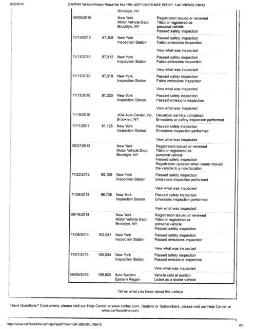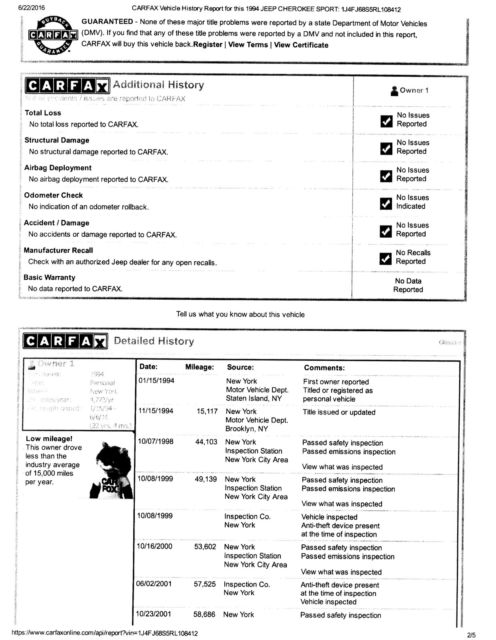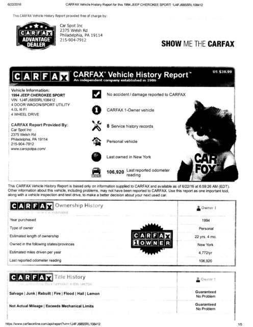 Description of 1994 Jeep Cherokee 4dr Sport 4W |