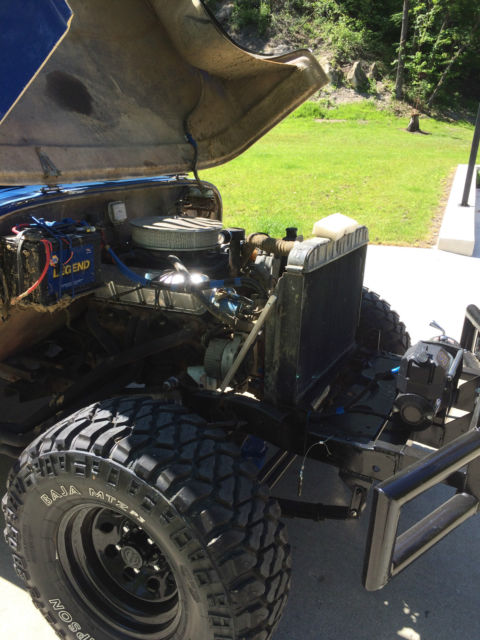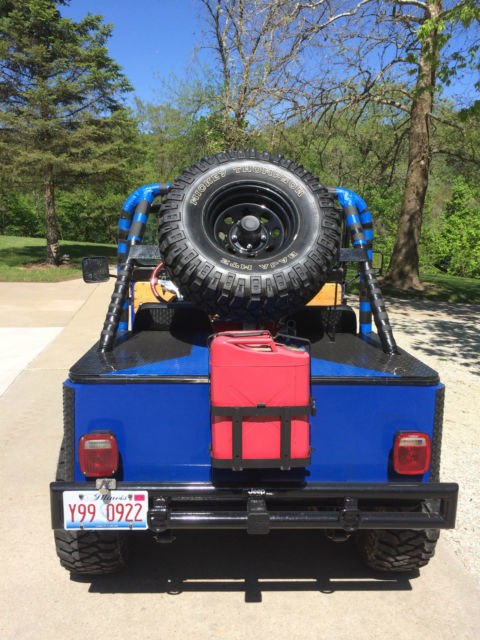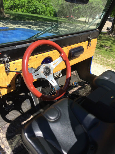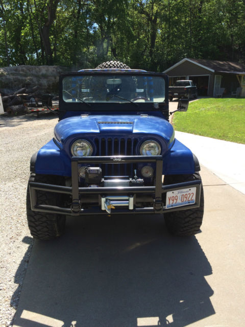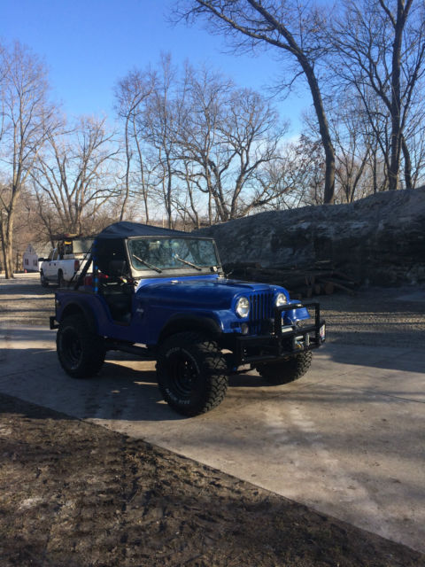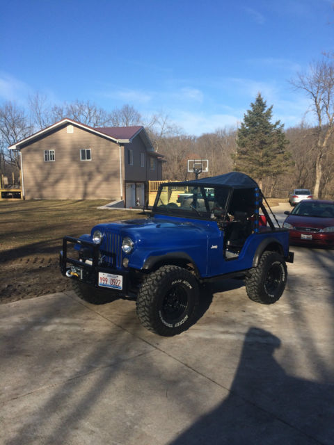 !972 Jeep Renegade CJ 5. 304 V-8 Headers and glass packs exhaust, 3 speed manual trans. Jeep has all fiber glass body custom dash with all in one gauge LED cluster. Here is all that was recently done over last winter. I converted manual steering to power steering. All heavy duty tie rods and joints, Steering Stabilizer. Has all new brakes and drums, 2"wheel spacers. New Steel wheels with 33" Mickey Thompson Tires and matching spare. All fresh tune up, filter, fluids,Clutch Kit, diff oil change, U-Joints, Trans Seals, Valve cover & Gaskets, Thermostat, V-Belts, 20 Gallon Fuel Cel, Fuel lines, Custom Aluminum work, new seats, Ken wood Bluetooth stereo, Pyle powered subwoolfe, CB Radio, custom Bumper, 12,000 lbs. wench, Battery and cables, battery disconnect, Leather Bikini Top, Hor, Fire Ex., center console,new leaf spring perches, bushings, greaseablepins. The paint on the jeep is not the best but it looks alright. Fuel gauge does not work properly . Jeep runs and drives good. 4X4 works perfect. Has a Jerry Can toolbox. Remember this is 1972 jeep It does have wear and tear, its a perfect off road toy. Not sure on miles, was told 30,000 on jeep and there is 100 some miles on new odometer cluster.