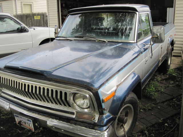 up for sale, 1976 jeep j 10 4x4, 75000 original miles,original 6 cyl engine and drive train, full time 4 wheel drive,runs and drives fine, just blew a brake line in the front, so would have to be towed,everything works on this truck, lights,wipers, 4 wheel drive, has the slider rear window, new battery, new starter, original owners manuel, extra right side fender, and extra left and right doors,with very little surface rust, no exterior trim is missing,left side drivers door panel is missing, and a cracked windshield, tires are in decent shape, buyer responsible for pick up, these trucks are getting very rare to find!!!! trades??? fishing boat??? have clear title in hand, truck is for sale locally, and I will end posting if sold, thanks for looking! 200.00 deposit thru pay pal, not refundable!!! again, buyer responsible for picking up the truck!!!!