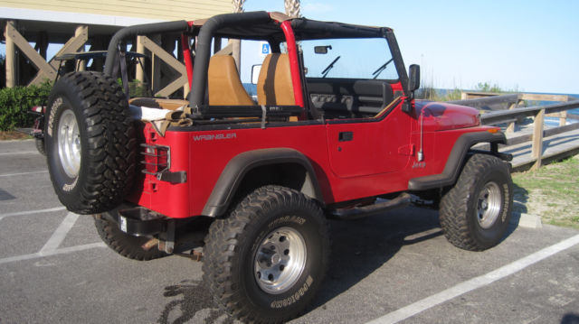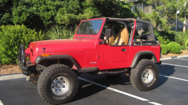 Up for sale is my 1992 Jeep Wrangler. I've owned the Jeep since 1996 and it has been garaged since then and I only use it in the summer. The original mileage is 90K. Has a 3 inch lift kit installed with premium tires. I only have a bikini top and soft door window panels. I didn't need a soft top since I only drove on dry, warm days. Jeep is in very good condition and I don't know of any problems. I just don't drive it that much and would rather move it own to another owner to enjoy. Has a brand new battery and there is no existing warranty and sold AS-IS. Please, feel free to email me with any questions you may have. LOCAL PICKUP ONLY - If shipping is needed the buyer should contact me before purchasing to discuss the possibility of shipping the jeep. NO INTERNATIONAL SHIPPING |