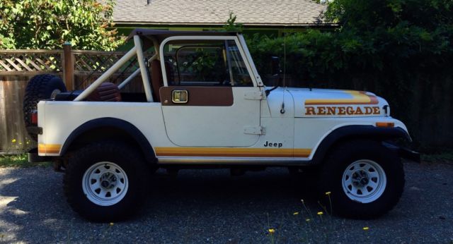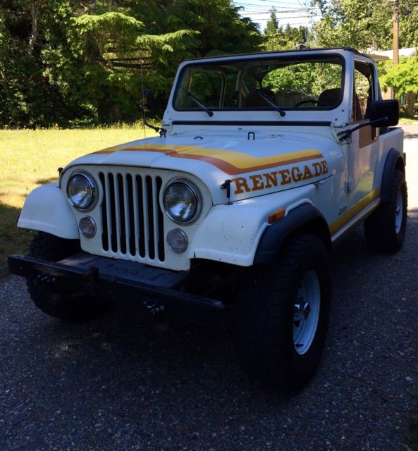 Original, Rust Free Survivor 1982 Jeep CJ7 Renegade. Pacific NW car from new.Original paint, decals, interior, engine, transmission and wheels.All windows original except front window.Comes with original hard top (brown) and after market Bestop "bikini" top (pictured) 280K + miles on odometer, engine rebuilt (2.5L "Iron Duke" 4 cyl.) Dec. 2015. Since then I've put a little over 2000 miles on the car. I refer to the Jeep as "The Duke" Since my ownership I have had the following maintenance performed:New camshaft, camshaft gear and sprocketNew push rods and lifter setNew master cylinderNew clutch master cylinderNew clutch slave cylinderFront and rear diff serviceNew timing gears (matched set)All new gaskets/gasket sets to the oil pan, timing cover, thermostat housing, manifold, push rod covers, valve covers and carb mount.Carburetor rebuilt (please note the engine was upgraded to a Weber carb set up)New alternatorNew spark plugsAll fluids new (engine oil, brake, cooling, etc.)* Have all receipts *Car had full inspection performed after purchase and has a clean bill of health. As you can see - any items needing attention were rectified and have been maintained. This is a very honest and great Jeep, you don't find many like this - or you get the opposite - over-restored. This is a car you can get dirty, drive and it gets lots of attention. I haven't washed it since my ownership. . . I hope you don't mind! I drove this car since last Winter and really enjoyed this Spring and Summer. As I said, it is completely reliable and turn key. I wouldn't hesitate to drive this car across the country, however if you've driven an old Jeep - it's not the funnest car to drive on the freeway. I prefer to drive this car around town, to the beach, to the park 20-40 mph seems to be the ideal speed for this ride. On the first start of the day it may turn over for 8-10 seconds but then fires right up and will fire right up for the rest of the day, no issues. Smooth power in all gears, barely ever get into 4th unless you are at highway speeds. Heater works and heats the cab just fine.All windows manual.All seats move and function properly.All lights and signals work.Horn works. More pics upon request, send me a message. Im happy to assist you with a pre-purchase inspection.I'm also happy to talk on the phone. |