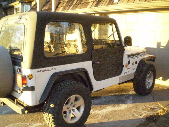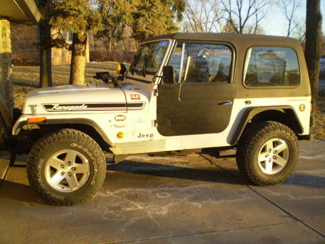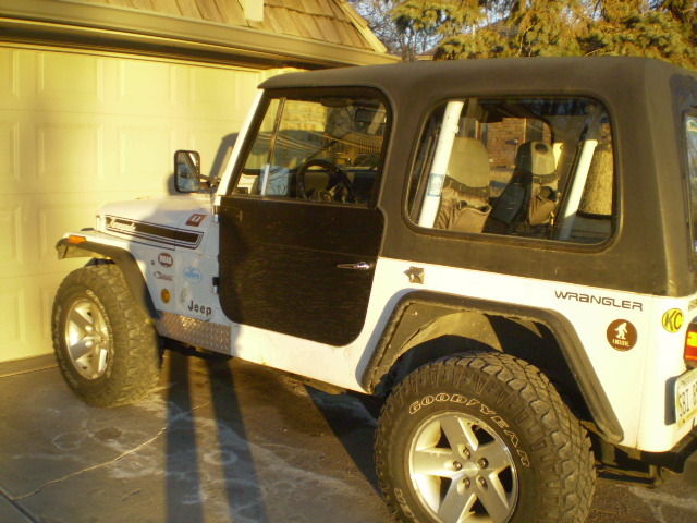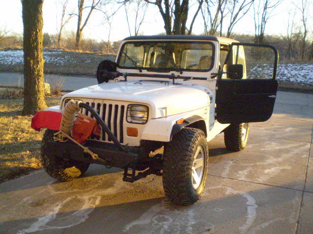 | 1994 jeep wrangler with a 4cyl 5 spd. being sold in as is where is with no warranty to highest bidder. This was a daily driver past couple of years in the summer months. I prchased the car from Des Moines. IA and have driven it in the Omaha. NE area. I bought the Jeep without a top and would use a Bikini top for rainy days. therefore I was never able to use in the winter months and would put in storage during that time. So. that has really helped to keep the rust from taking over. This past fall I purchased the hard top and doors from a CJ jeep owner. I installed them with the intention of extending the driving season in late fall and early spring. I have not driven in the snow this past year as I had another vehicle to drive so this has not seen salt this year as well. The Jepp has roughly 152. 00 mile on it. as it runs well and shifts ok. It still could be used as a daily driver. as long as you stay off the interstate and keep it below 50MPH. Engine. runs well. it is the 4cyl and it is getting tired. but idles well and runs without misfiring. has a header on it and a muffler with no tail pipe after the muffler. in the past 3 years I put on a new water pump. new belt and some pulleys. one new motor mount. and I have the other side motor mount but have not installed it but will include it with a new tranny mount. Tranny. tranny has always been a little ifffy. Sometimes it acts as if it does not want to shift into second gear smoothly. so you need to finese it in gear. also 5th gear was always odd as you could never get enough speed up to be able to use it. and when you did it was difficult to get into 5th gear. I replaced a motor mount and that has helped a little with this. I also have a tranny mount that could use replaced as well and I will throw that in. It almost feels like the clutch slave is not disengaging the clutch all the way. and it does not happen all the time. but I do have a good used clutch master and slave cyl assembly I will throw in with the sale. I just not have had the time to mess with changing it out and it has not gotten to the point that it has annoyed me to badly but it is worth mentioning. This has the external slave cyl so changing this does not require removing the tranny from the engine. Transfer case. opereates properly and 4 wheel drive works as it should. this is an aging jeep and has lots of miles so please consider that as the drivetrain is old and tired. the front axles will probably need new ujoints in the near future. Suspension. springs are tired and could use a new springs. there are some heavier shackles on the front and I have a set for the rear that will rasie the jeep 1. 5". the front end is tight and needs no bushings or tie rods or ball joints and this time. the rear track bar was removed before I got it and I was told that was done to help keep the ride less bouncy. I have an extra track bar I can throw in. rides like a jeep. but suspension feels good and tight and not loose. Gas Tank. the fuel guage works. which is rare but there is a small leak in the gas tank when you fill it more than 3/4 full. I suspect it to be either the gromet on the roll over valve or the low presure fuel return line. banking on the roll over gromet. that means you either need to not fill the tank. or drop the tank and fix it. all the bolts are clean and have been sprayed with PB blaster. as I have been flirting with tackling this job the past year. but balked because I figured after I removed tank I may as well change the leaf springs out with a small lift but never had the time and money to do it. Frame. the frame is solid as are most of the mounts. one common area prone to rust is the rear spring eye mounts. I took a pic of the rear frame on the passenger side and you can see that there is some rust through in that area and this will need repair sometime. the driver side is still good as is the rst of the frame. Body. the Body is in great shape as is the floor. there is the usual wear and tear and dings. areas of rust are on drivers side where the floor meets the rocker. I took some pics of that area and it has some patch panels over that area. but overall good condition for a jeep in the rust belt. it has TJ rear metal fender flares and the wheel well has been cutout to fit. the front plastic flares have ben trimmed. the rear bumper has a receiver hitch and the front bumper is a homemade fabricated bumper with D rings and an aftermarket stinger. light guards on headlights. hi jack lift on hood will not be sold with jeep. Tires and wheels. Wheels are from a Rubicon TJ and the tires are wrangler Duratrac and have plenty of tread on them. they are 16". spare tire is non matching 16" and holds air. the jack is still in tack under the hood. Top and doors. the top is from a CJ and those fit a YJ but need some mods to work on them. this jeep has the roll bar supports that go to the winshield so the inside of the top near the windshield was trimmed to fit around those brackets. the rear hatch does not work well with a YJ as the hatch closes over the rear tailgate. and to open the hatch it wants to bump the spare tire and you get the picture. amyway I disabled the latch mechanism and siliconed the hatch to keep the water out as I am using the top just for a few months and did not want to put any money into that rear hatch which is rusty. The top is fiberglass and the hatch is metal. the doors are from an early CJ as the latching mechanism shows. they were brown and I just paintd the outsides and left the insides brown. see pics. as they are for function only for the few months they are used. I do have the metal flashing pieces for a soft top install I will include that go around the bed portion of the jeep and the windshield. I slao have the door stickers and a full bikini top to include. . . On Jan-16-15 at 16:40:42 PST. seller added the following information:please note. if you dont live in the Omaha area I would recomend that you tow or trailer this jeep home as the