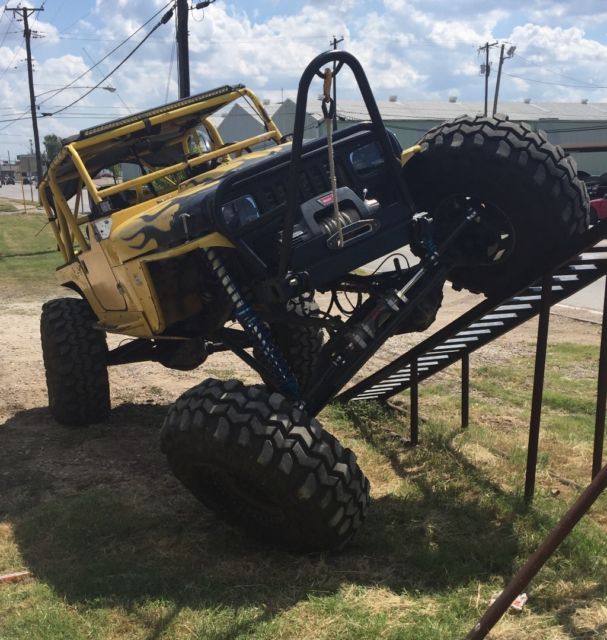 Rock Crawler on one tons for sale or trade. If you're looking for a crawler that can do most anything you throw at it...this is it. This rig can handle extreme if that's what you're into. Or just a great all around crawler. There's been lots of money and time put into it to make it a very capable crawler.Here's a list of specs: 350 V8 on propane. Runs great! Mild cam. Headers. Msd ignition.Th400 trans with locar shifter. Ford np203/205 doubler with triple stick.Full hydraulic dual ram steering.Hydraulic brakes. Front axle: Dana 60 out of 85 F-350Yukon chromoly axle shafts with super joints. ARB air lockerDrive slugs5:38 gears4 linked16" 2.5 King Coilovers Rear axle:Sterling 10.25Detroit locker5:38 gears4 linked16" Fox 2.5 shocks 4 LED rigid dually flood lights. (Rock lights in wheel wells)2 LED rigid dually spot lights.30" LED rigid single row light bar.Truck light LED headlights. Like new 43" Tsl SX tires.17" aluminum Raceline beadlock wheels.Corbeau seatsSimpson harnessWarn 9.5 winch. Like new. New motor and cylinoids. Synthetic rope.HeaterCutting brakeBed liner on interior.Safari top.This jeep has been used and has some rock rash.I do have a title. Never transferred it.$16,500 or offer/Trade817-233-8710 Might trade for streetrod, muscle car, classic, or classic 4X4 or ? |