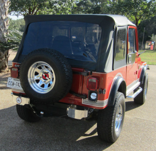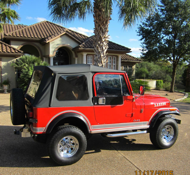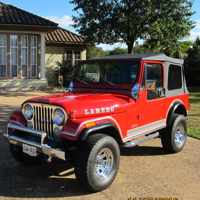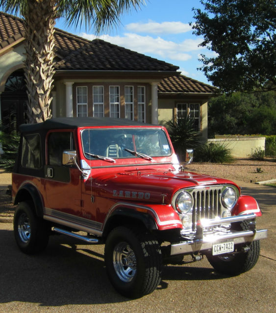 Nice 42,000 original mile 3rd owner 1984 Jeep CJ7 Laredo with working AC, 8 Cylinder V8 304 with Cam, 4 BBL Edelbrock Carburetor, Tac, Rally Clock, Tilt Wheel, etc., and runs like a house on fire! Also the original black hard top is available for extra cost of $700.00. Buyer to provide for all pickup/ship cost. The original engine was totally factory replaced with a complete "NEW" V8 AMC 304 engine when the old carburetor caught fire from factory a defect and that is the reason for the scorch mark on the hood. Really nice collectable 32 year old jeep for the collector or every day driver that will only appreciate in value! Has your normal handling marks and scratches for its age, but does not take away from its stunning looks! Has no rust issues and always garage parked! Only selling to finish restoration on a 1962 Buick Flexible Hearse. You don't want to miss this very nice rare and unique V8 304 Laredo!