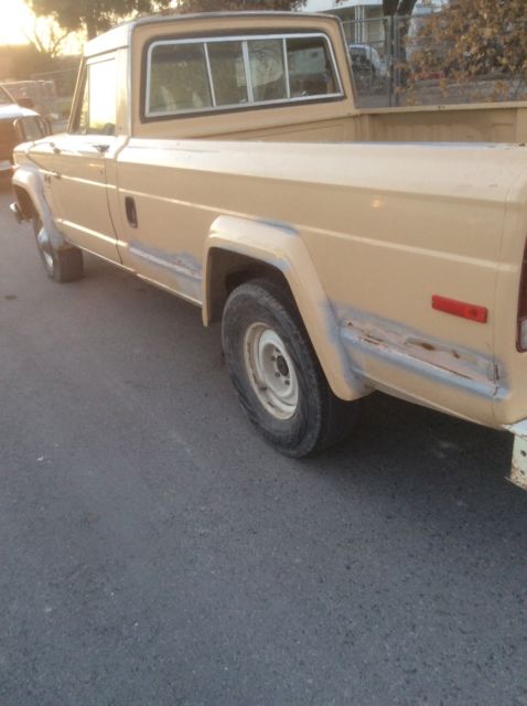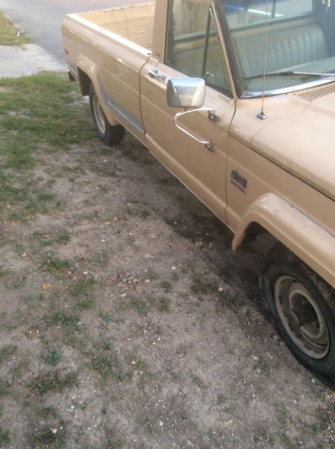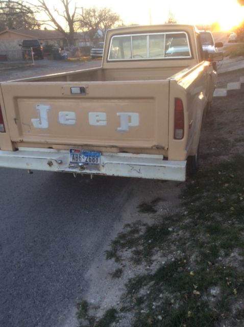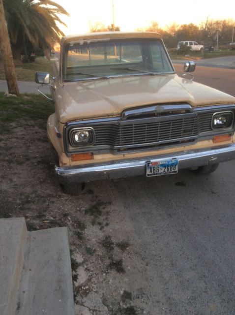 | Im selling my 1980 jeep j10 due to the fact that I have to many projects to finish. I have two of these jeeps to sell. The other will be sold at a separate time. This jeep is all original an has a little rust on the right tire flares. The rest of the truck is pretty much rust free an some of area that are brown in the picture is where rust started but was treated. The top of the windshield Crome trim need to be replaced where there is tape in the pictures. The right rear side window needs to be replaced. This has a 360 motor an a transmission that shifts good with no problem. You can also make an offer 8303134711 |