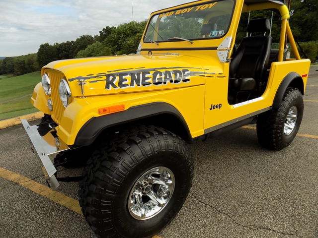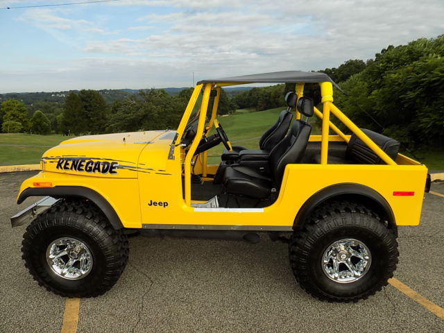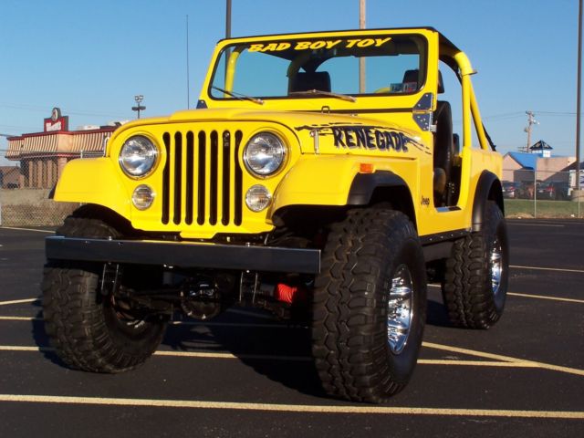 COMPLETELY RESTORED 18 YEARS AG, I HAVE OWNED THIS JEEP THE INTIRE TIME. THIS JEEP HAS BEEN IN A HEATED SHOWROOM FOR 18 YEARS ONLY DRIVEN IN PARADES & CAR SHOWS, HAS NEVER SEEN A DROP OF RAIN IN 18 YEARS. I TOOK OUT THE ORIGINAL 304 MOTOR OUT AND REBUILT A AMC 360 FROM BOTTOM UP. HAS A EDELBROCK PERFORMER INTAK, CA, LIFTER, CARB. ALL MATCHED . HEADERS, HIGH OUT PUT IGNITION, STAINLESS FA, BRAIDED LINE, ETC . 36X12.50X15 SUPER SWAMPER TSL TIRE, A TRUE 36'' TALL TIRE. RANCHO SUSPENSIO, CHROME FRONT & REAR DIFFERENTIAL COVERS, FULL ROLL CAG, QUADRATRA, WITH LOCKING HUB, 513 ZOOM RING & PINION GEARS . AUTO MATIC WITH SHIFT KIT. DOUBLE WALL FIBERGLASS BODY FROM 4 WHEEL DRIVE HARDWARE.ORIGINAL METAL HOOD & FRONT END. STINLESS FRONT BUMPER. BEST TOP BIKINI TO, ORIGINAL REAR SEAT & DASH PAD IN SHOWROOM CONDITION. IF YOU'RE LOOKING FOR A SHOW & GO JEEP THIS IS IT. PRISTINE CONDITION, ADULT OWNED FOR THE LAST 20 YEARS.. THE MILEAGE ON THE SPEEDOMETER READS 76,792 THE JEEP HAS ONLY HAD 250 MILES PUT ON IT IN THE LAST 18 YEARS. IT JUST SITS ON MY SHOWROOM FLOOR AS AN ICON FOR MY OFF ROAD ACCY STORE. THIS JEEP IS A TRUE TURN KEY AND GO JEEP.