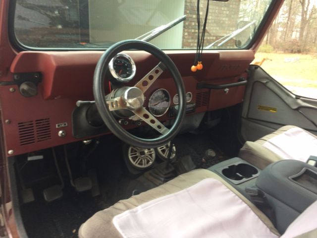 For Sale 1984 Jeep CJ-7 4 speed manual with 4x4 4.0 Liter 258 CID Engine. This Jeep is a nice driver which needs nothing to be a daily driver or a weekend warrior. The paint is nice for a "driver" but is not "show car" quality. The paint is approximately four years old. There is very minimal rust. I attached a picture of some under paint rust bubbles on the passenger side fender. The floor pan is good and has been covered with bedliner. There are a lot of new parts on the Jeep to include:RadiatorWater PumpLights, Bezels, and HousingsHood HingesMirrorsWindshield WipersGas Tank The Jeep comes with the Bikini top shown in the pictures and a full soft top not shown but is in good condition. The front seats are spliting at the seams but still look decent. There are generic seat covers on now. NO RESERVE!!! Bid to Buy If you have any questions or would like to see the vehicle prior to bidding please let me know. |