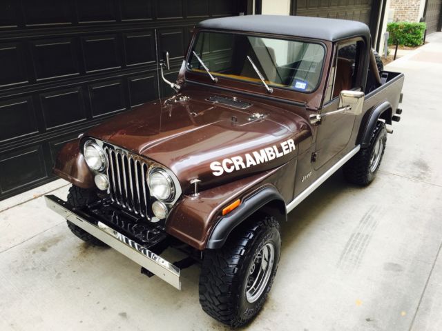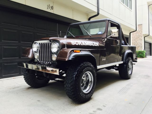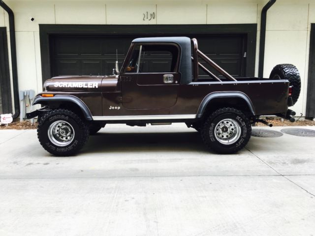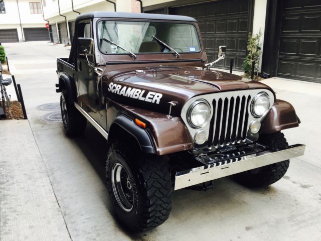 For Sale: 1981 Jeep CJ8 Scrambler 4.2 Liter 6 Cylinder - 109,000 miles4 Speed ManualDana 300 Transfer CaseAMC 20 Rear EndPower BrakesPower SteeringNew TrailMaster 2.5 Inch Suspension Lift32x11.50-15 Kenda Mud Terrains w/ Matching SpareNewly Rhino-lined Bed, Floor, and HardtopNice Hard DoorsNew TaillightsNew Stainless GrillNew Stainless BumperNew Stainless Mirrors and Hood Dress-Up Package The Scrambler is much more difficult to find in good condition compared to a CJ7. Production was only from 1981 - 1986, and on a much more limited volume than the CJ7. Subsequently, values are 30-40% higher than similarly equipped CJ7's, and 50-60% higher than CJ5's. My Scrambler has been a Texas truck it's entire life. 2 Owners. There are no rust issues. The original floors and bed are still in the truck. The hardtop fits very nicely. The doors shut nicely as well, and close flush with the body and have even body gaps all around. The paint on the truck is original and tells a tale of awesome adventures and good times through its dings and scratches. The original engine, transmission, transfer case, and axles are all still with the truck. The rear axles has been upgraded to Alloy One-Piece axles and the front hubs have been upgraded to SuperWinch locking hubs. The original 6 cylinder has 109,000 miles and change. It still has the original Carter carb on it. Start up takes a 5-7 pumps and about 30 seconds to get warmed up enough to idle nicely. Once warmed up, I don't get any hesitation out of it and I don't notice any flat spots. Idles around 800rpm. The 4-speed shifts nicely. The clutch only has a couple thousand miles on it. It engages smoothly and does not have any chatter. If you rest your foot on the clutch pedal while driving, you will get some squealing out of the throw-out bearing. Either don't do that, or the throw-out bearing could be replaced. Steering is smooth and easy. The wheel centers back as it should and tracks straight down the road. Additionally, it has power brakes. Brakes engage smoothly and stop the truck without issue. No problems with 4-wheel drive, nor the locking hubs. The Jeep is in nice driving condition and I would trust it around town. It'll do 70mph on the highway without issue but I'm not going to be driving it California haha. The Scrambler is a tremendous candidate for a complete restoration. Or drive as is and enjoy the fun of having a classic Jeep that gets a ton of attention! Message me with all questions! |