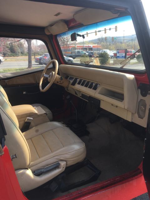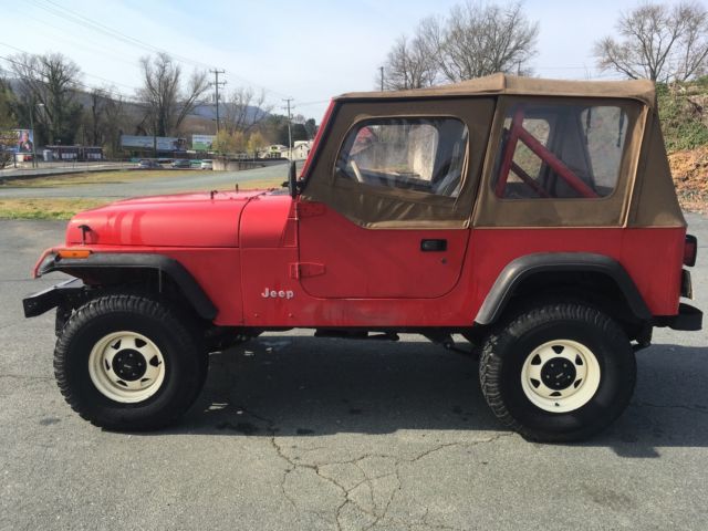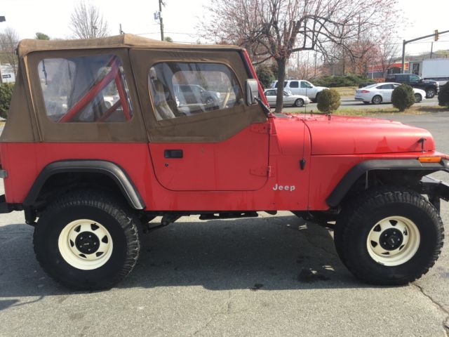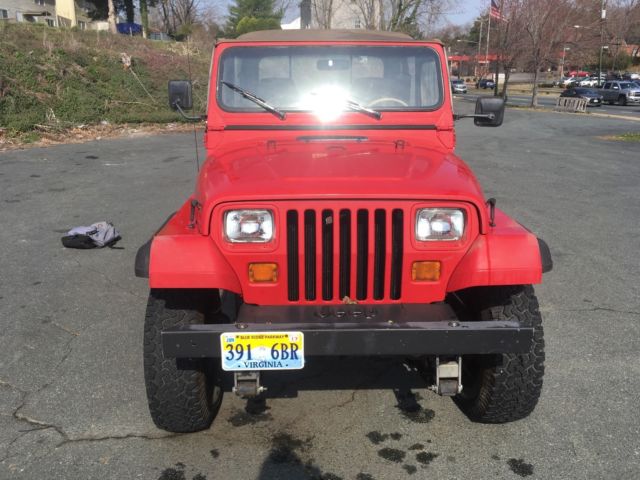Absolutely NO RUST. California car originally. Very hard to find jeeps in this condition. * 1991 Jeep Wrangler YJ * Inline 6-cyl * 5-speed manual * 4.10 gearing * 33x10.50 BF Goodrich A/T tires (about 3 years old) * Rough Country suspension lift * Brand new battery * Alpine stereo with USB capability * 4 new(ish) speakers, including two "wedge" speakers that tuck in between the rollbar and the rear wheel well. * old school off-white wheels * Instead of rear seat, I built a wooden trunk. Lock the tailgate and your belongings are secure. * Tuffy locking center console * Also comes with spare tire carrier and 31x10.5 spare tire (not pictured). * Two volume shop manual which sell for $200 on ebay: http://cdn6.bigcommerce.com/s-oky81sr/products/10224/images/11630/91_jeep_2v_spine__95287.1436985888.1000.1000.jpg?c=2 This engine is often called "bullet proof". Starts right up, gearing gives it good acceleration and highway speed but ready for off road. Good heat. No A/C but the engine bay has a place for a compressor. Obviously it's not in "show" condition. It's 26 years old but going strong. Can be driven as a daily driver as is or modified to your liking. I've taken it across the country twice and would do so again without hesitation. Flaws: * Top is getting old (Bestop). Still functional but has black spotting on the tan part and the clear plastic has some scratches and foggy part. * Paint is faded, in some spots more than others. I personally like the look, but some people might consider it a flaw. Drivers side seat has a sizeable rip in it. Both seats could be replaced. * Battery gauge doesn't work. Easy and cheap fix though. Please feel free to ask questions. I want to make sure you know what you're getting. Can be picked up locally in Charlottesville, VA. If you're within a few hundred miles we can probably arrange a meet up halfway. Otherwise I will work with you coordinating with a shipping company. * I have this for sale locally on Craigslist and reserve the right to end the auction early. |