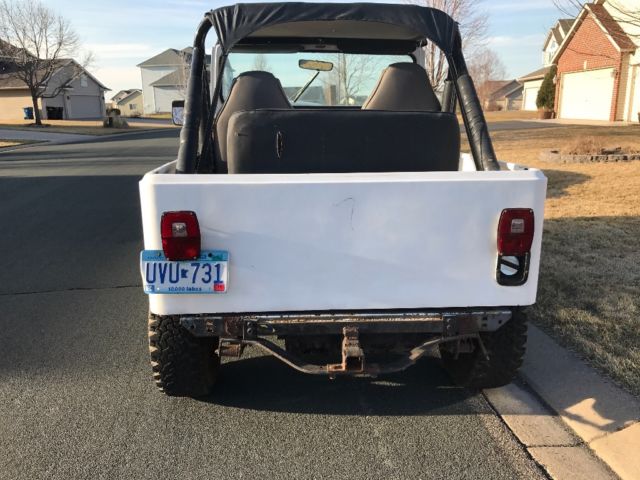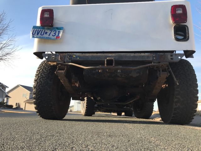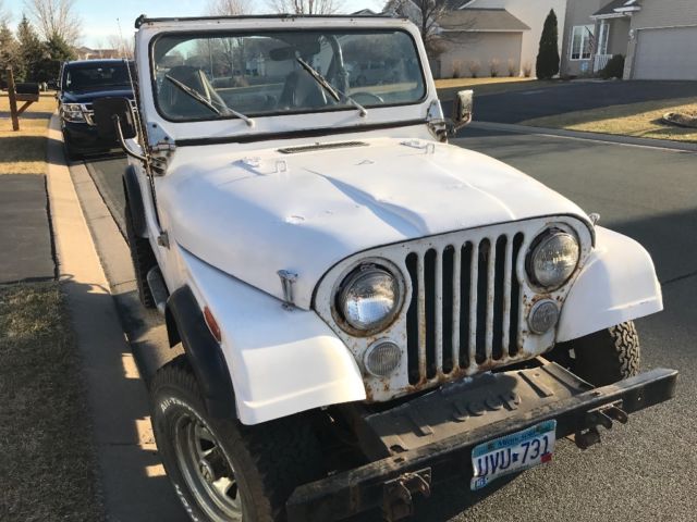 This Jeep has a 1979 engine which runs and drives well. The drive shaft is not there for the 4x4, so it is essentially rwd. Power steering has a leak in it. This has a fiberglass tub - I have no clue when that was installed. There is only a bikini top with this. No hard top or soft top. I have a tow bar that will go with it and a canoe rack that mounts to the front bumper. No doors. I used this for fun drives with the family, but we are now a family of five, so it no longer works for us. I will help load for shipment, but I won't arrange the shipping. This is sold as-is, where-is, no warranty. There are rough aspects of this Jeep. It runs and drives well, starts right away, but it could use a paint job. The frame appears to be solid. I am selling it no reserve to free up garage space. Good luck bidding! |