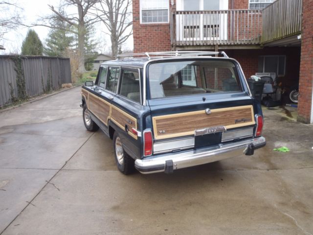 THIS IS A GOOD RUNNING JEEP! JUST HAD TRANSMISSION REBUILT. ALSO PUT IN NEW REAR ENGINE SEAL, ROD AND MAIN BEARINGS. TIRES ARE ALMOST NEW B F GOODRICH TA'S . ALSO NEW HEADLINER. TRUCK RUNS AND DRIVES GREAT . PAINT LOOKS GOOD FROM TEN FEET, SOME OF THE CLEAR COAT IS PEALING ON THE ENGINE HOOD, SOME RUST ON ROCKERS AND REAR FENDER WEL, BUT NOT BAD CAN BE SEEN IN PICS. FRAME IS SOLI, ALL POWER WINDOWS WORK INCLUDING THE REAR GLASS, A/C NEEDS A CHARGE, ORIGINAL RADIO PLAYS AND WORKS WELL. THIS WOULD BE A GREAT ONE TO RESTORE OR JUST DRIVE AS IS AND ENJOY ! THIS WAGONEER IS FOR SALE LOCALLY AND MAY BE SOLD BEFORE AUCTION ENDS . I ALSO HAVE ANOTHER 1988 LISTED ON EBAY I HAVE TOO MANYJEEPS AND WILL BE SELLING ALLLOW RESERVE!THANKS FOR LOOKING AND BIDDING