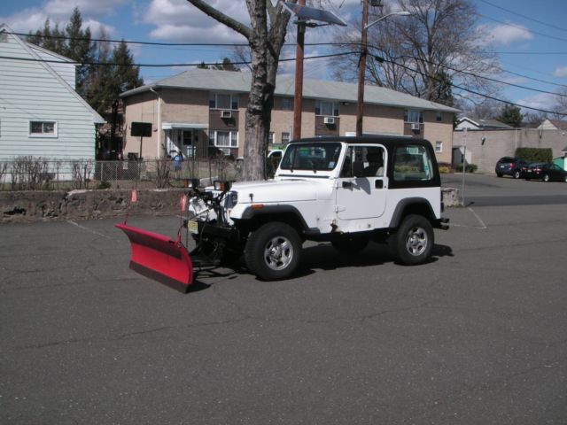 1992 Jeep Wrangler YJ 4.0l 6cyl fuel injected automatic, a/c (needs charge) 3inch skyjacker lift, grease able shackles, drive shaft slip joint eliminator kit. Moog ball joints. Truck is very tight and well maintained. The chassis was sand blasted, epoxy primed and black polyurethane paint. The front quarter panels are rusted out. Has the typical jeep rust, but the chassis is in very good condition. It has a 6 1/2' Western snowplow. I use this truck to plow 3 driveways and it sits the rest of the year.call 973-423-3939 to inspect.