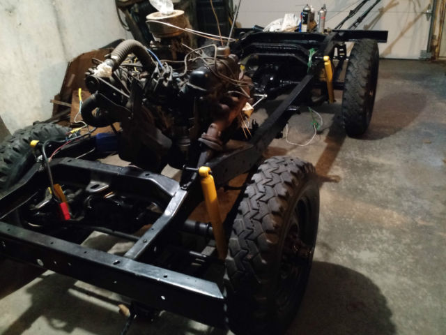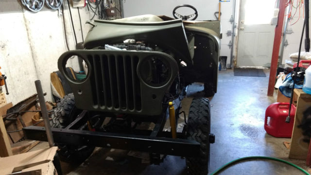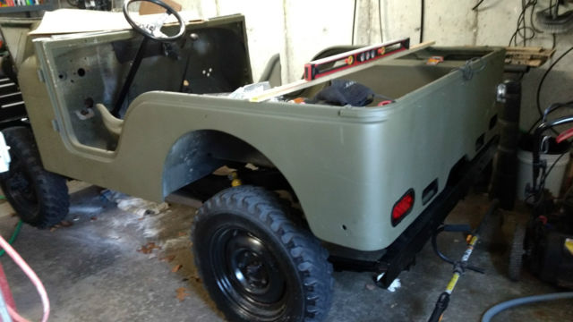 66 cj5 with a 72 CJ5 fiberglass tub and fenders. Steel hood everything is painted Olive Drab green except the windshield and roll bar. Frame power coated or electro painted by the guy I bought it from. Jeep has a Dauntless V6 with a T14 3 speed Tub is ready to be bolted down and wired. I have the hardware and mounts I just need to bolt it down tons of new parts and extras too. Spare dash and wiring harness I think I have everything to finish it. Seats need upolstery or covers. Comes with Soft top also which is in good shape Soft doors included Seat brackets are there new Steering wheel Tons of new parts Hydraulic clutch, just needs the hose and fluid I also have the chilton and service manual for itNew brake lines, fuel lines shocks, fuel pump and tank. Master Cylinder I found a newer Sahara so I am toying with parting with this one or keeping it. Will Run, needs the gas tank filled which is brand new. Brakes bled and wired. Has all new fuel and brake lines run. Sweet project I just find myself lacking the passion to finish it but again I am not going to give it away $4650 or BO and if the add is up I have it. This thing is 51 years old and will look fantastic when its finished Spare paint too |