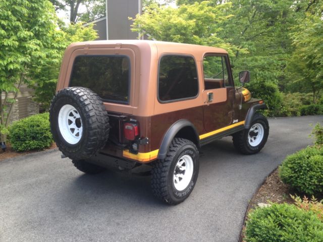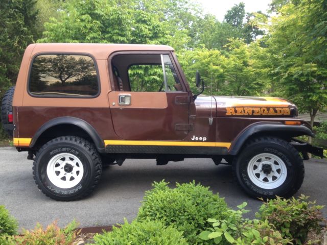 Up for bids is an all original 87,000 actual mile jeep CJ-7 Renegade, rare automatic with 258ci straight Six, shifts drives and idles very nice. Has hard top and full doors, sat in barn for 20+ yrs and was pulled out and gone through mechanically. New brakes (lines, calipers, pads) master cylinder, alternator, battery, fuel pump, fuel lines, full tank, new 31 inch on/off tires, new carburetor, also most of the gaskets and hoses replaced. Does have play in steering wheel, I think there is way to manually adjust the steering gear. Just never messed with it. Body and engine are all original, nice patina and original paint and interior, does have some rust in spots, mainly winshield, and couple spots in rear floor where meets quarter panel on underside. Front floors very solid and frame is in great shape. Dash has crack and driver seat seams are loose, no rips or tears. This is an orginal jeep but is 35years old, not restored, so please don't expect it to be show quality because it isn't. That said it's a very solid jeep and mechanically very sound. Great driver quality that very mechanically sound. Low reserve, I have excellent feedback history. Can work with buyers wanted to have jeep shipped at there expense. Please bid with intentions of buying the jeep! Jeep sold as is with deposit required within 24hrs