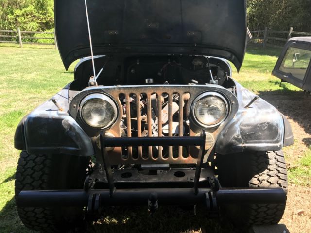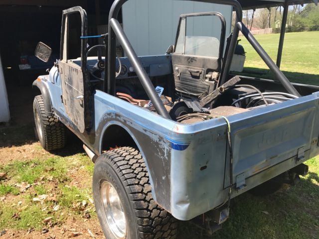1978 Jeep CJ-7 With a 360 V8 Engine fender well headers aluminum intake. 4 spd trans with new clutch and flywheel. As you can see in pics this is a PROJECT.This is the most Rust Free CJ7 BodyI have found. Only spot of rust is at the passenger side where the rollbar sits about the size of a dime as shown in pics. Frame was stripped down and painted with bedliner. Has a full set of seats in black denim in decent shape. Full spare and carrier. Comes with hard top and full doors.This will need put back together as you can clearly see in pics. But a great rust free cj to begin a nice restoration. New wheels and tires (2yrs ago) 33x12.50. New brakes, body mounts, radiator and a lot more. Obviously it does not run and drive. It comes with most everything to finish the jeep. May be a few small parts missing. It comes with a windshield frame but no windshield. The very rear of the frame had rust but was cut out and needs the cross section replaced that the bumper bolts to. Motor and trans are good as is the driveline. Original paint on this old jeep. Body is VERY SOLID. with just minor dents and dings mainly the front of fendersare damaged but fixable. The hardtop is in good condition and the doors are good. This is a excellent Jeep for restoration I just dont have the time and the will to work on it. my loss your gain. Jeep will need trailered/hauled to its new owner. Payment due in cash within 7 days of auction closing.