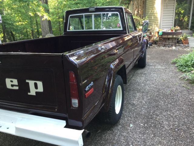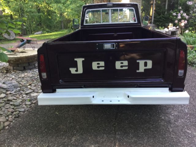 This is a very nice Jeep truck with a 8' bed. Repainted two years ago. This truck had a camper cover on it and therefore the bed and tailgate were not bent up,the photos show this. Truck drive out very well and everything works well. This is a nice driver quality truck. Non refundable deposit of 500 within 24 hours of close of auction. Bidders with 5 or less feedback need to contact me before bidding.On Jul-05-17 at 05:40:15 PDT, seller added the following information: I failed to note in description that left window is not working,I just did not get time to fix,it needs lift mechanism,not expensive but any bidders that want to cancel are welcome to do.