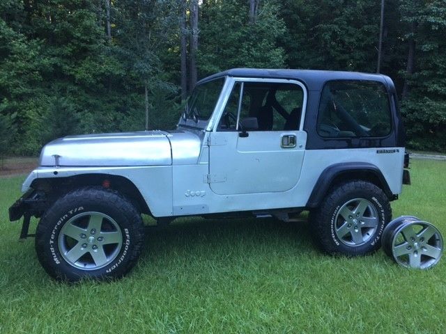 88 Jeep Wrangler w/ Hard top w/ sun roof and steel doors which comes off easily. Has a Jeep Cherokee Engine with 138,101 miles straight line 6 Cylinder . Runs good, new valve cover gaske, new roll bar cove, new tail light cover, great radio that works,rhino lined interior and Rubicon Jeep rims on tires and the spare rim. Has some bad paint spots on body but no major ding, windshield has crac, front tire weld plastic covers come with it and some extra parts come with i, see pictures. Great Hunting Jee, just needs some TLC..... Please feel free to message me with any questions.
