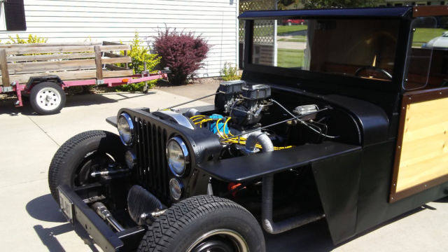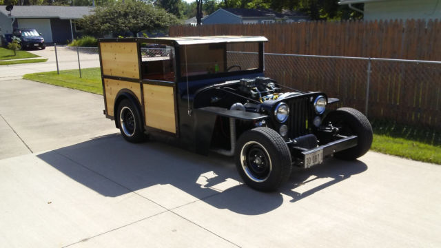 New build about 100 miles on it. Won best rat rod at first show i took it to. Trophy goes with car. Built on Jeep cj5 frame streached to 100" wheelbase. Has jeep 3.55 rearend with adjustable coilovers and triangulated fourbar. Mustang II front end. Jeep cowl & dash. Wood body laid over a 1" square tube cage frame.Stock Ford 302 with aluminum manifold & headers, dual Weber 32/36 progressive 2bbl. carbs on home built highrise, looks great! HEI ignition, aluminum radiator, rebuilt C4 trans with B&M shift kit & shifter. Tilt steering wheel, fourway flashers, third brake light. Extra wires under dash for acessories labeled. No wheel alignment since built but drives straight. I've had it up to 70 mph. for short periods no problem. No rubber around doors so it has rat rod rattles. Built by retired machinist. Must go medical bills to pay. Low reserve. AS IS. Titled as 1979 Jeep cj5. $500. nonrefundable deposit to PayPal - rest in cash or certified bank cashiers check. Car & title released when check clears. Can help shipper load. More info call 309-752-9056.