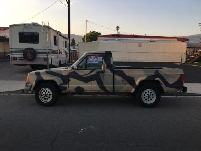 MECHANIC'S SPECIAL!!! this is a 1989 Jeep COMANCHE Truck; 4.0L, 6 CYL, 2WD, with a 5 speed manual transmission stuck between gears. The Jeep was towed to Goleta Radiator & Auto Repair and the owner confirmed that the clutch is still good. The solution could be simple or complex to disengage gears. I have a bid to diagnose the problem for $75 at Goleta Transmission. I cannot afford to spend any money to fix my truck. I am a cancer survivor on limited income. Instead, I'm letting it go to auction AS IS and WHERE IS. I am the legal owner and the vehicle has clear title. This truck has only132K ORIGINAL MILES!!! It has been a SOLID work truck and a DAILY Driver. It has a locking toolbox and CUSTOM Desert Storm CAMO paint job with tan interior, custom rear bumper, great heater, CD Player, and NO A/C. The Jeep Comanche must be paid for and picked up by the BUYER within 72 hours after the auction has ended. The Jeep Comanche is located in Goleta, Santa Barbara County, California. |