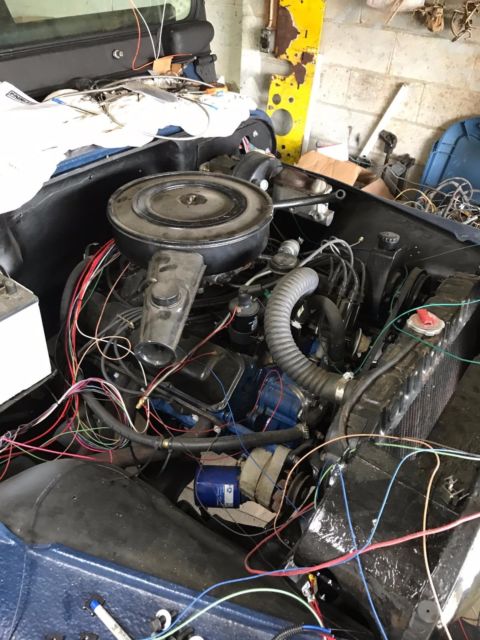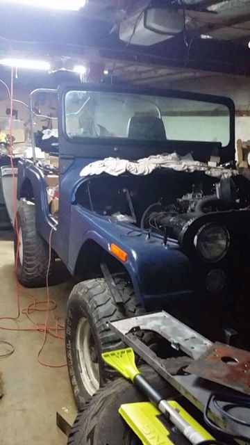 CJ5 project jeep. This jeep is 89% complete I just don't have time for it anymore was redone from the ground up. Frame has been sandblasted boxed in and kbs. Body is still a steel tub with new front floors and cross bracing has been kbs coated and monster lined. Leaf springs have been upgraded to 2.5 wrangler setup with 2 .5 lift. Has a rebuilt 304v8 with a 4 speed transmission yes it has the granny gear. Has a hydro clutch along with power brakes, front disc brakes and rear drums. Has power steering rear metal bumper that swings. Has pretty much all new parts brakes, gas tank with skid plate, stainless steel brake lines, fuel lines new, diffs rebuilt. Seats have been redone along with rear bench. Only things that need to be done is finishing wiring which I have started, dash panel needs to have gauges and switches put back in which I have. Heater box is done just needs to have 2 more things completed then installed. Couple other little things needed but all the hard work is done. Im sure other things are done that I forgot to mention. Also yes engine does run tittle in hand.
