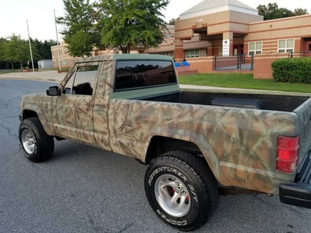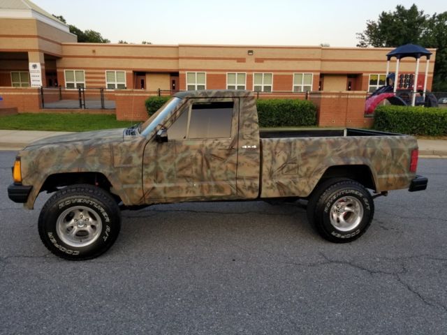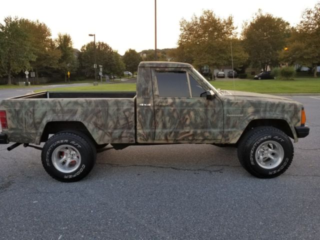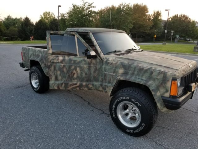 NO RESERVE! So bid to win! 1991 Jeep Camo Comanche. This truck is nothing but amazing. I have been a Jeep enthusiast for almost 20 years and I have never had the pleasure of owning such a nice Jeep. From fist sight the Camo paint job catches you a little off guard but once you open the hood you can see this truck has been babied. I have gone back and forth on whether or not to paint the truck back to the original white color but it gets so much attention and compliments I have just left it alone. The Camo paint job is by no means a show quality paint job but again it gets attention. It is a 2 ownertruck with the dealer tag still on the tail gate. It has just a little over 103k original miles but will continue to go up as I use this a few times a week to commute back and forth to work60 miles round trip. I could spend hours telling you about what has gone into this vehicle, but to keep it short the truck has been kept as close to original as possible. I have recently installed a new bake master cylinder, power steering line, plugs and wires, fresh oil and filter, air filter, Thrush muffler, and a new set of Cooper 31 x 10.5 x 15 tires. I am not aware of anything this truck NEEDS mechanically, and would trust this thing on the road any day of the week. It cruses comfortably between 60-70 mph on the highway and does not pull, shimmy, shake, rattle, wobble when accelerating or stopping. The clutch is firm and the 4 wheel drive engages easily when needed. The AC is cool, NOT ice cold. I would not dare tell you it only needs a re-charge. It still has the original R-12 system thathas worked fine for me, but If I did any changes I would update everything to the 134 system. The truck is for sale locally and has already started to draw a lot of attention due to the amount of people and shopsin town that know the vehicle. It's the "Camo Comanche". I am not trying to retire off the sale of this truck, but I am very familiar with the market on this type / condition of Comanche. I have gone back and forth with the idea of keeping this in storage and letting it appreciate over time, butI don't have thespace needed to keep the truck stored.I wouldreally like someone to get this truck and truly appreciate it. I don't think it has ever seen a mud pit and I hope someone would not purchase this to chop up and turn into an off road machine. Given the right buyer this is definitely more of a collectors / dailydriver truck. Please let me know if you have any additional questions about the truck. I welcome anyone that would like to inspect the vehicle. I am 45 minutes from 3 major airports. I am more than happy to assist with shipping or pick you up from the airport. As mentioned the vehicle is for sale locally so I do reserve the right to end this action at any time. The truck is for sale as is with no warranty expressed or written. |