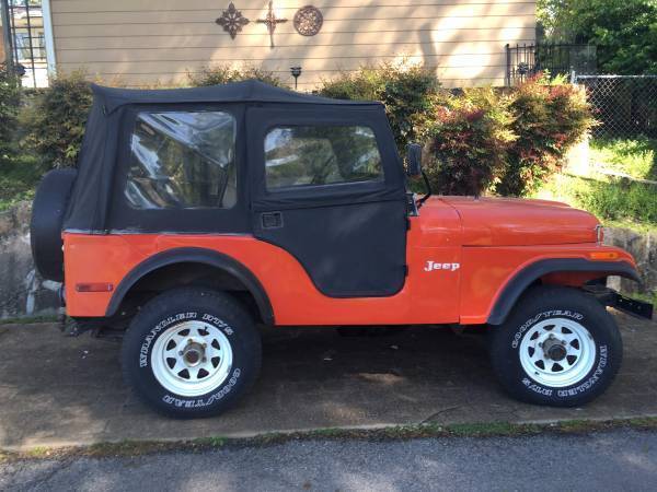 1973 Jeep CJ5 80,8XX miles 258 I 6 with 3 speed manual Lock out hubs Factory installed winch. Not spooled or connected, but installed. Full soft top and doors Seats have been re covered New Battery and cables Great paint, very little rust Will include all factory spares, including stock wheels ☹ fuel gauge does not work ☹ small spot of bondo repair near the front of the passenger door opening I have decided the time has come for someone else to enjoy the pleasure of owning and driving this beautiful 1973 Jeep CJ5. I've had the privilege of being the curator of this wonderful machine since May, 2016. As of late "The Tractor" as it's affectionately become known to my fiancé and I, has been spending more time parked than being driven and enjoyed. This is about as bare bones of a Jeep as you'll find. No power steering, a heavy clutch, and four wheel drum brakes. When you drive this, you know you're behind the wheel of a classic Jeep. "The Tractor" always starts up, and runs great. A couple pumps of the gas, turn the key, and blast off. The paint and body are in great shape for a 43 year old Jeep. There is one small spot of bondo by the passenger door frame, and very little rust to be found. I can only hope to look this good when I hit 43. And speaking of paint, this thing was just meant for a Vols fan. Tennessee orange inside and out. This is sure to be the star of any tailgating you'd want to do. I've done my best to give a full and accurate description of my Jeep. It is by no means 100% perfect, or fully restored, and I make no such claims. It is however in exceptional condition for 43 years old. It has never been used as a trail Jeep, rock crawler, or mud bogger. It's not an easy task to find one this old, and in such original condition. I would hope it's future caretaker would continue to show it the love and respect it has received until this point. Please feel free to call or text with any questions. Additonal pictures are no problem. I AM NOT interested in any trades. Cash or cashiers check in person only. |