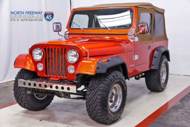 1978 Jeep CJ-7 with a recent refresh/restoration. The top and upholstery are new. The powertrain is a stickshift with an updated 304 ci AMC. It has power brakes, disc front/drum rear. New exhaust, shocks and bushings. New Goodyear Wranglers (all 5). It fires up and runs well. Yes, we're a Hyundai store. We're part of the Potamkin Auto Group (17th largest in the US). We sell Exotics, Classics, Resto-mods and we're the largest Chevy SSR dealer in the world. Go to to see our inventory of Ferraris, Lamborghinis, McLarens, Porsches, Mercedes and others. We can ship this car to you anywhere in the world. Buy from us with confidence; we're rated A+ by the BBB and we've had the same ownership & managers for 13 years!