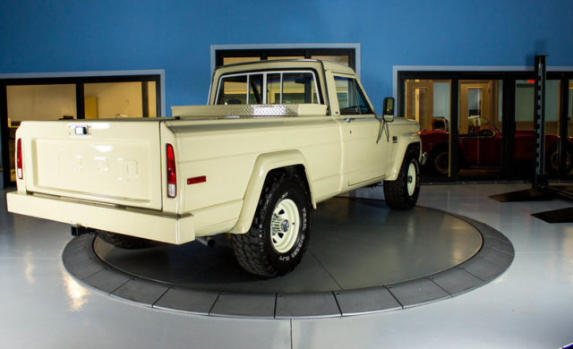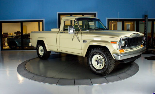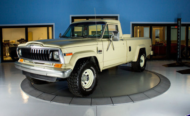 | The Jeep Gladiator (or Jeep Pickup or J10 Series) is a full-size pickup truck based on the large SJ (Jeep Wagoneer) platform that was built and sold under numerous marques from 1962 to 1988. The Jeep pickup design was noteworthy for being in production for more than 26 years with only minor mechanical changes. The Gladiator was the basis of the first post-war U.S. Army trucks designed to be civilian vehicles and adapted to military use. The Gladiator name was dropped after 1971 after which the line was known simply as the Jeep pickup. The pickups were designated as J2000 and J4000 models (the 3000 series was dropped in 1971) until 1973 then as J10 and J20 models from 1974 to 1988. They are now few and far between. But we have a 1984 JEEP J-SERIES J10 Pickup here at Skyway Classics. The AMC 258 cu in L6 engine was introduced in 1972 and offered through 1988 and produced 112 hp and 210 lb·ft of torque. But the one we have for sale had the bigger AMC 360 cu in producing 195 hp and 295 lb·ft of torque and a three-speed automatic transmission! It is painted a great cream color with a matching cream interior. Other features and options include air conditioning power steering and brakes gauges center console with radio system sliding rear window 4WD and a body matching tool box. It rides on aggressive tires and wagon wheel style rims. The 1984 JEEP J10 we have here at Skyway is one heck of a nice 4WD vehicle to drive and enjoy and is certainly one to attract attention wherever you drive it. So give us a call at 734-389-7246. We also finance! Check out our financiers here at financiers financiers In the meantime check out this vehicle on our Skyway Classics blog here at blog blog |